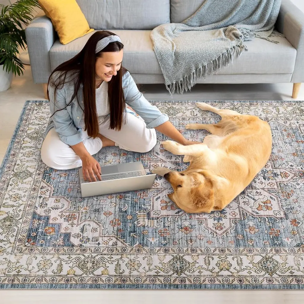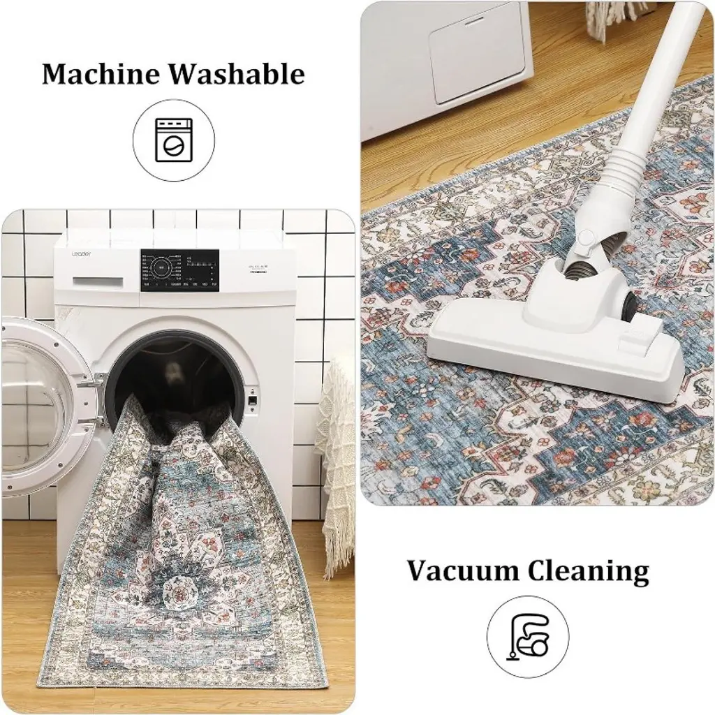 Acekool Vintage Floral Rug - Washable 6X9 Boho Carpet With Non-slip Back