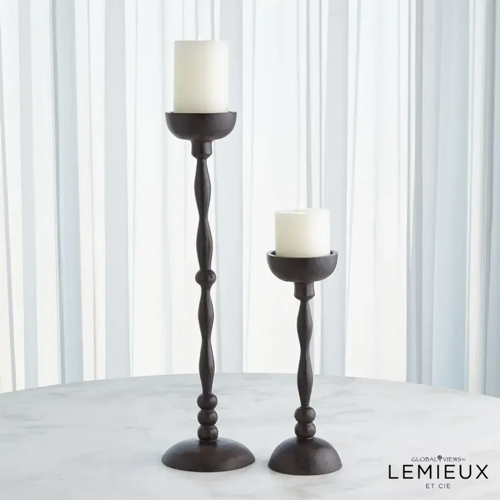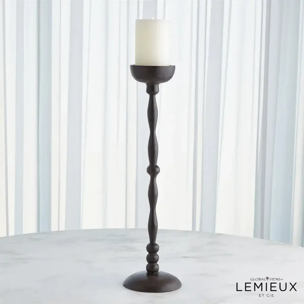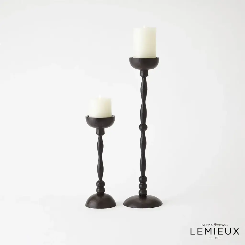 The Achille Candle Holder combines the strength of hand-forged metalwork with delicate and intricate details. The dark finish enhances the ornate beaded design. This candle holder is a captivating centerpiece that adds a touch of design and decoration to any space. From a fashion forward perspective, Global Views offers accessories, furniture, statement lighting, and an assortment of rugs and mirrors to add beauty and joy to your home.