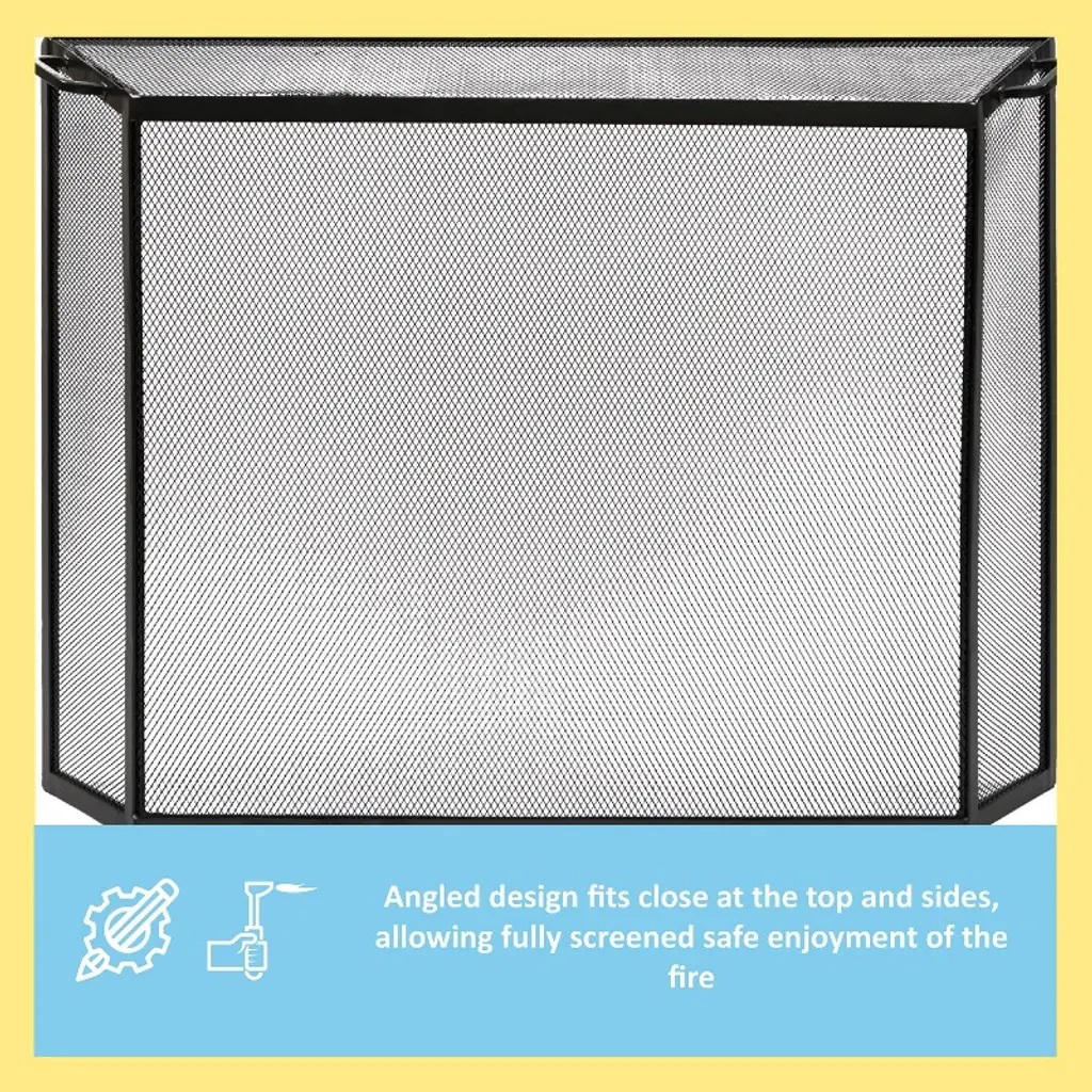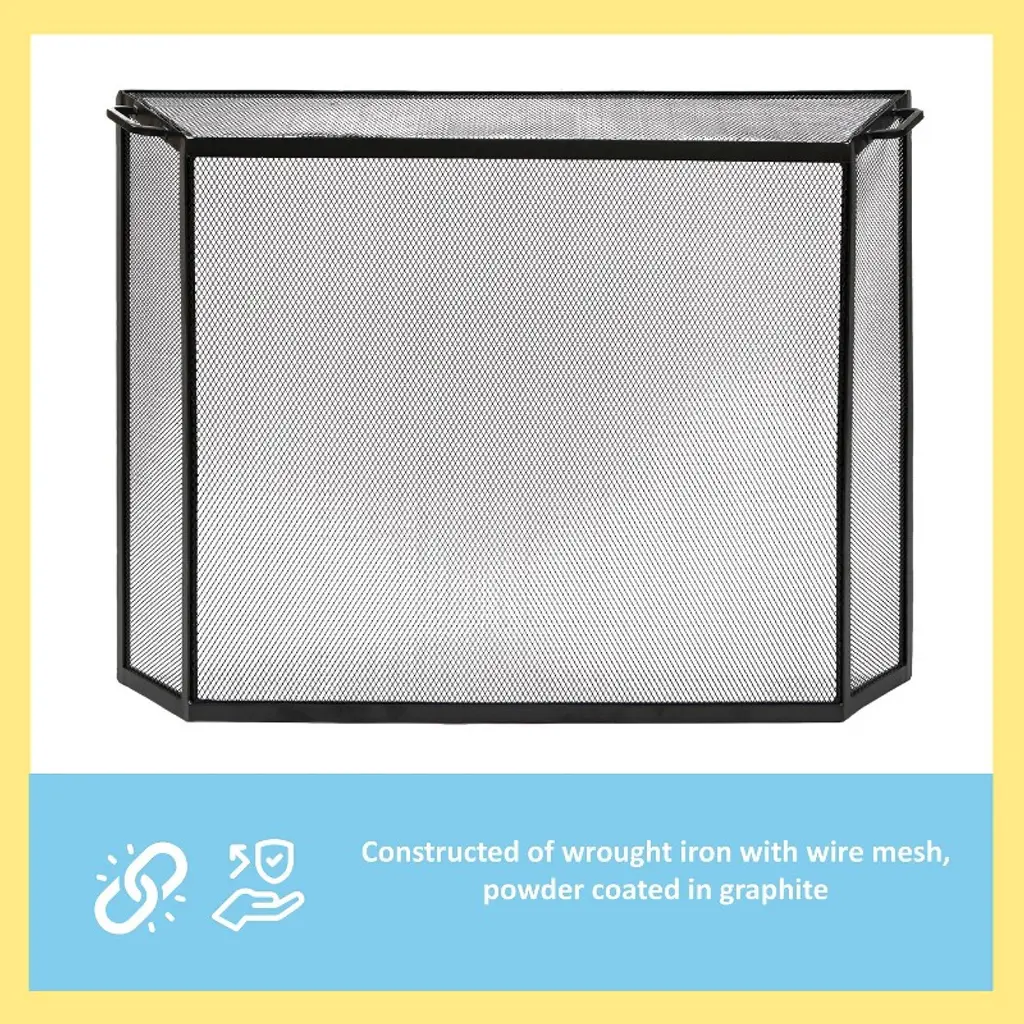 Achla Designs 50" Xl Contemporary Spark Guard Wrought Iron Fireplace Screen Graphite Finish