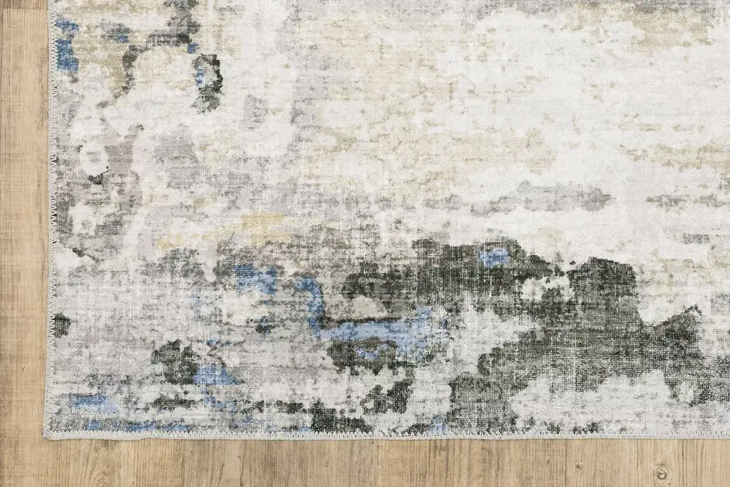 Made of 100% polyester, the Ackerman rug features an innovative, machine washable printed base with non-slip backing, perfect for high-traffic areas and family friendly living spaces. With its low-profile construction and intricate blanket stitch finish, the Ackerman rug boasts an abstract design in grey, ivory and blue tones. All sizes are machine washable and dryer friendly. Washers with agitators not recommended.