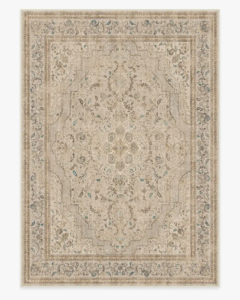 Elaborate elegance. Our Adeline Dark Wood Rug boasts a subtly distressed medallion design inspired by antique European rug patterns. It's decorated in botanical details in rustic shades of brown and black contrasted with regal pops of gold, coral, beige, and taupe, surrounded by an equally intricate vine border.