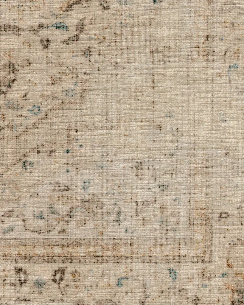 Inspired by classic European rug patterns, our Adeline Ivory Opal Rug features a gently distressed diamond medallion with ornate corners and borders in warm dark brown and tan and highlighted with bright pops of blue, dark teal, and golden yellow.