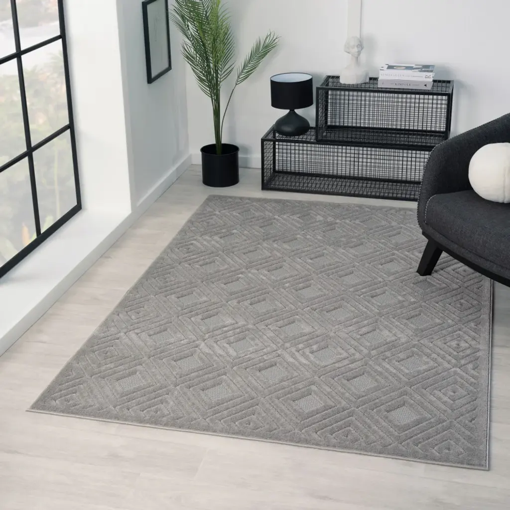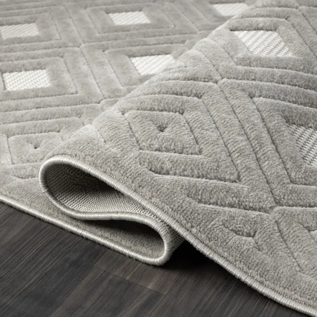 Jazz up your living space with this versatile indoor and outdoor safe area rug. Expertly powerloomed in Turkey, this rug is crafted from 100% polypropylene making it durable, stain resistant, and easy to clean. The neutral color palette complements any decor style from modern to traditional, while the intricately detailed design adds a subtle touch of sophistication. Perfect for high-traffic areas, this rug is ideal for adding comfort and style to your patio, porch, bedroom or living room. Elevate your home with this area rug that is both aesthetic and functional.Features:- 100% Polypropylene- Power-loomed in Turkey- Outdoor Safe- Naturally Stain Resistant- Available in a variety of colors and sizes to fit any decor and spaceRug Care:- Rug pad recommended for longevity, and to prevent sliding and shifting- To expedite the flattening process, roll the rug in the opposite direction and massage visible creases with your hands.- Vacuum regularly and spot clean as needed.- Rotate it periodically for even wear.- For liquid spills, firmly blot with a clean, undyed cloth to absorb as much as possible. For stubborn stains, professional rug cleaning recommended.- For storage, store rug in a well-ventilated dry area.PLEASE NOTE: Digital images and colors may vary due to differences in computer monitors and mobile phones. Measurements are approximate and patterns may vary slightly according to shape and size selected.