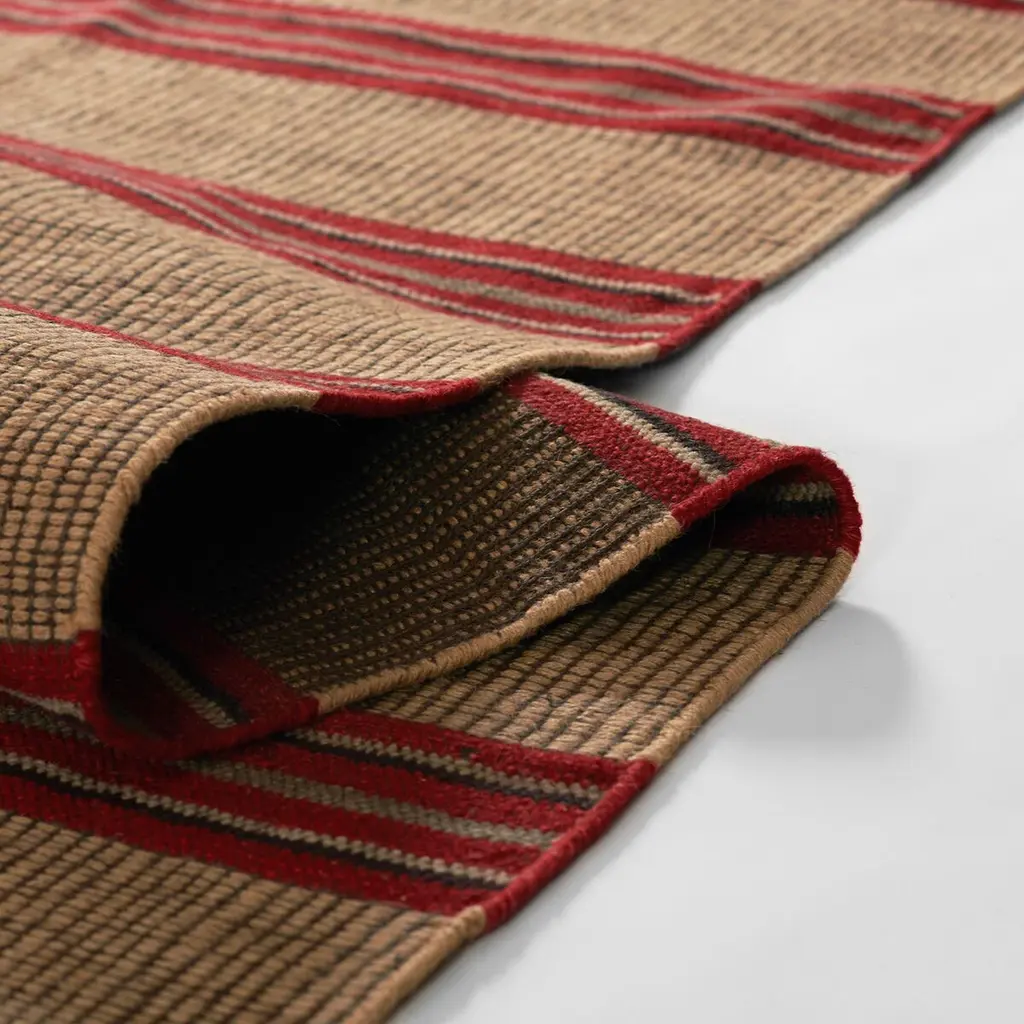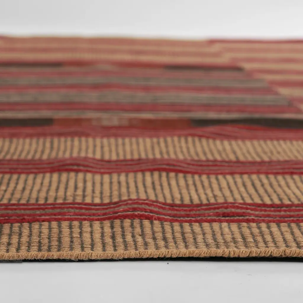 Axel is a groundbreaking collection that masterfully combines jute and wool into a single, cohesive design. Inspired by the vibrant colors of the Southwest United States, Axel features deep reds and buffalo browns, amplifying organic textures and hues reminiscent of various spices common in historical Axel-style homes. Each rug in the Axel collection is meticulously hand-made, patching together areas of jute and wool to create a unique, heirloom-quality piece. The jute enhances the organic, rugged nature of the design, beautifully complementing the Kilim wool patches. This fusion of materials provides each rug with a vintage aesthetic that is both timeless and contemporary. Bring the warmth and rich textures of the Southwest into your home with the Axel collection, where innovative construction meets traditional beauty