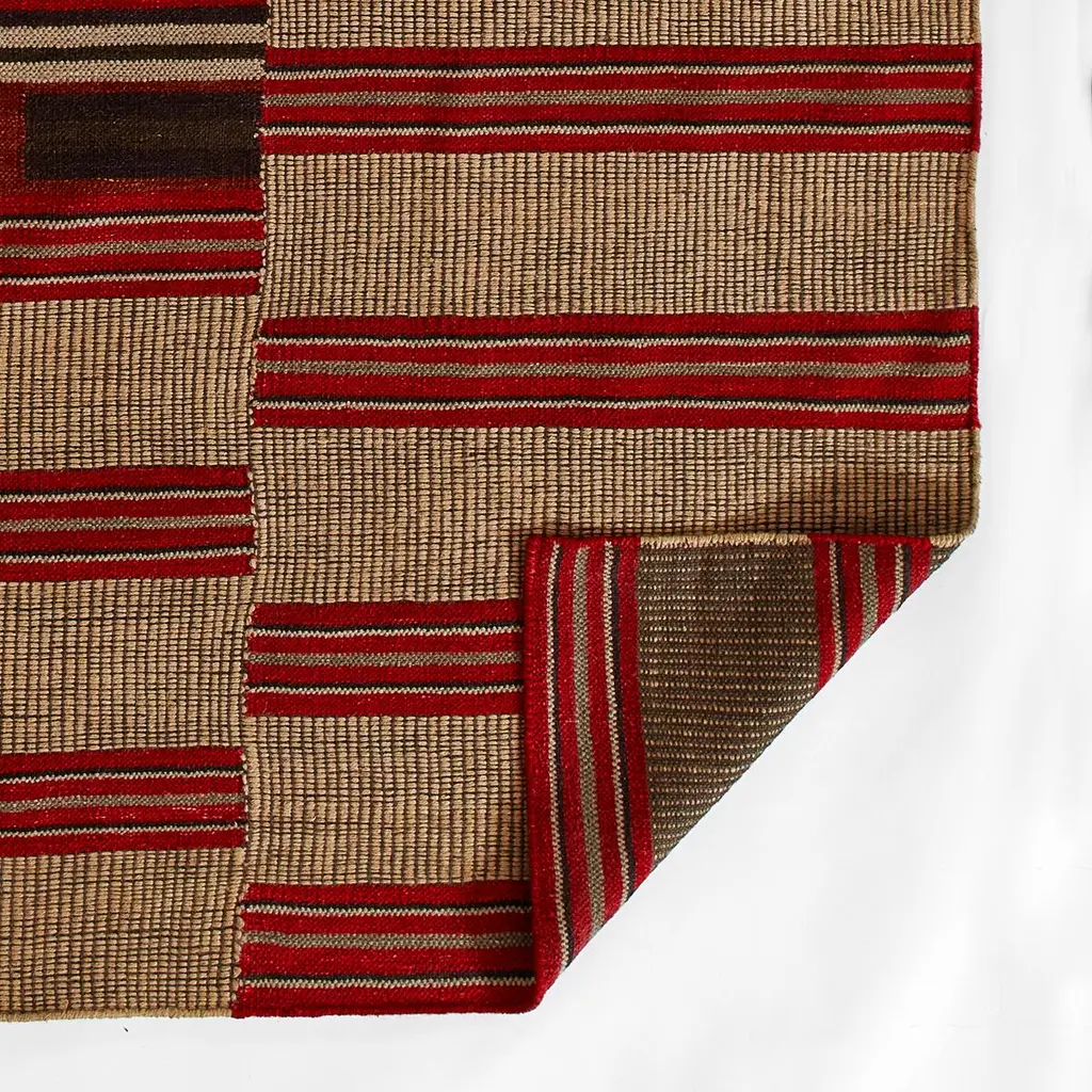Axel is a groundbreaking collection that masterfully combines jute and wool into a single, cohesive design. Inspired by the vibrant colors of the Southwest United States, Axel features deep reds and buffalo browns, amplifying organic textures and hues reminiscent of various spices common in historical Axel-style homes. Each rug in the Axel collection is meticulously hand-made, patching together areas of jute and wool to create a unique, heirloom-quality piece. The jute enhances the organic, rugged nature of the design, beautifully complementing the Kilim wool patches. This fusion of materials provides each rug with a vintage aesthetic that is both timeless and contemporary. Bring the warmth and rich textures of the Southwest into your home with the Axel collection, where innovative construction meets traditional beauty