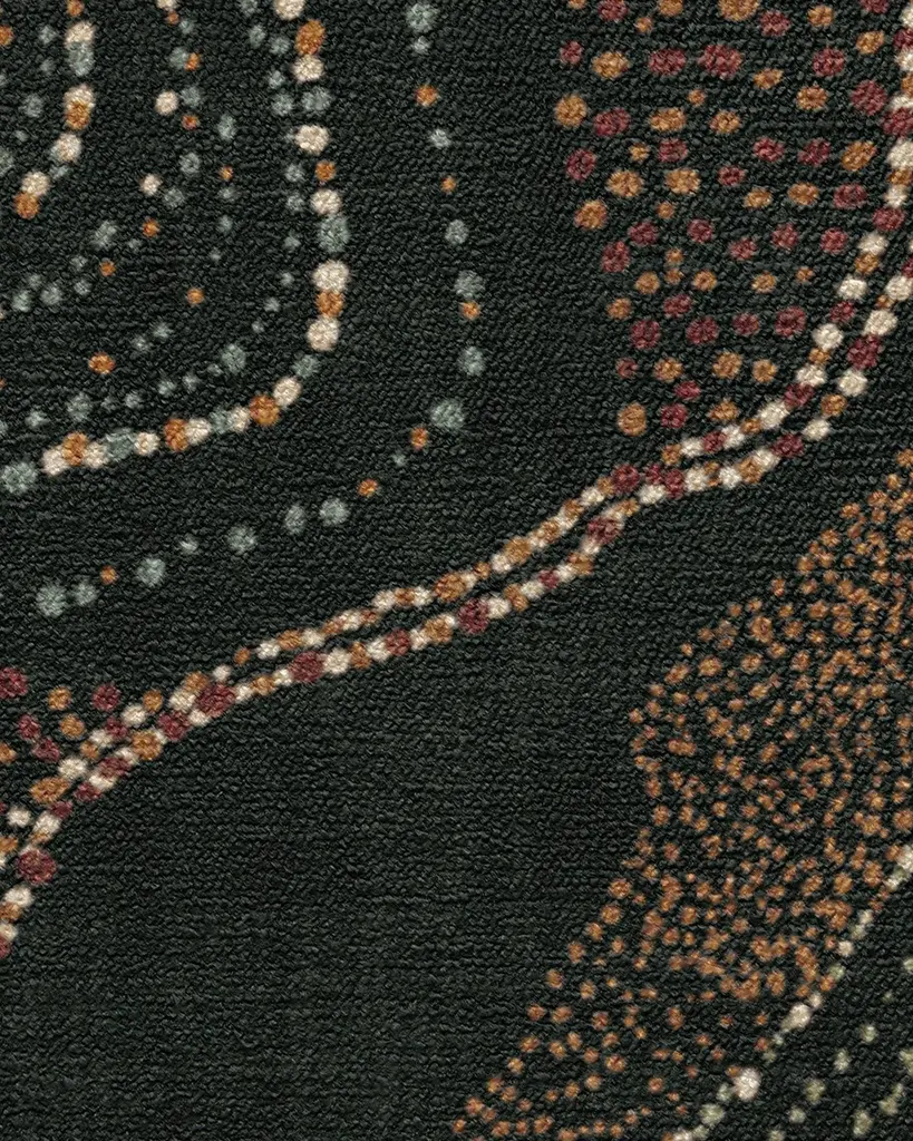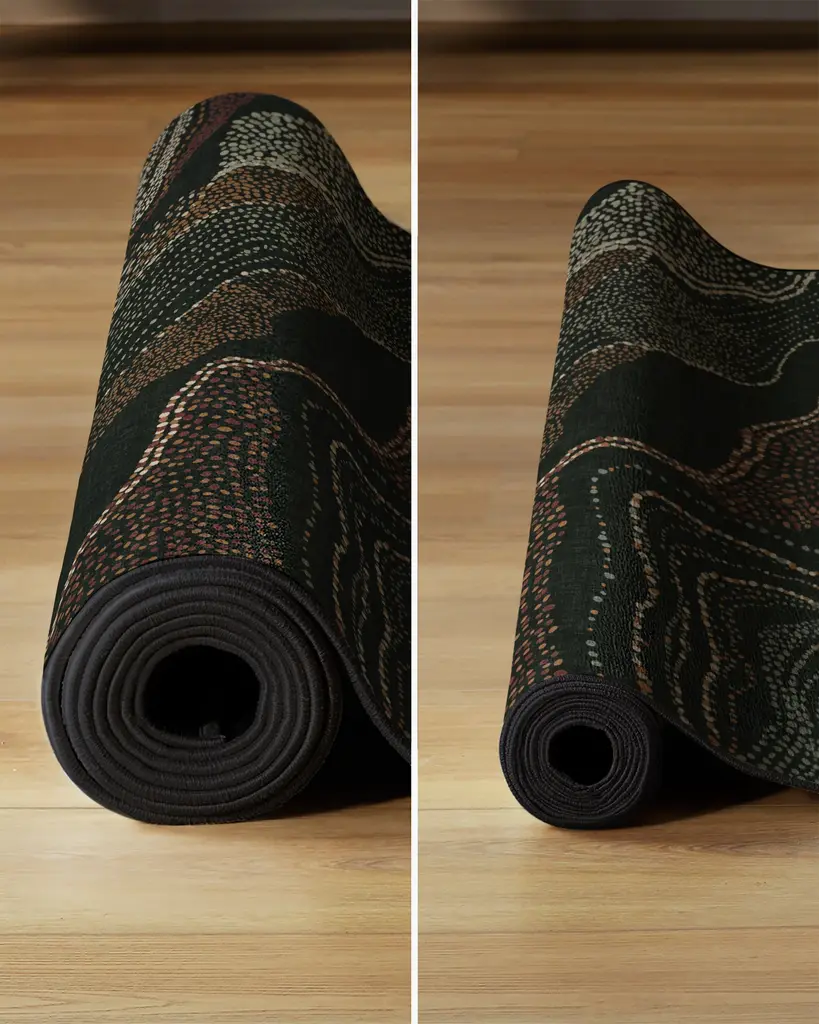 Step into a world of cultural richness and artistic expression with our Malene Barnett Adorned Black Multicolor Rug. Inspired by the intricate body art traditions of the Nuba people, this expressive design features a repeated textural dotted pattern arranged organically. Movement and visual interest are heightened through repetition of the rustic red, orange, gold, pastel green, sage green, and cream motifs. A striking black background solidifies the palette, creating a perfect tapestry of color and texture. Water-resistant, stain-resistant, and machine-washable. Rug colors may vary slightly according to your device and the lighting in your space.