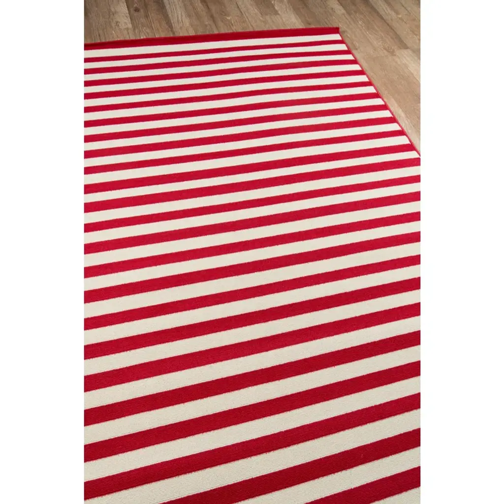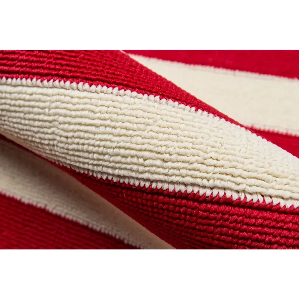 Add a coastal touch to your home with this nautical indoor-outdoor area rug. This rug has a classic red-and-white striped pattern to add a pop of bold color to your patio, deck, sunroom, or entryway. It's made of 100% polypropylene, so it's durable and resistant to mold, water, fading, and mildew. Plus, we love how this rug's low profile means it can stand up to traffic and slip under doorways. Why not add it under your patio table for a beachy feel?