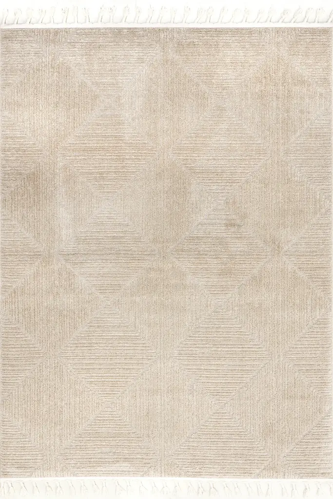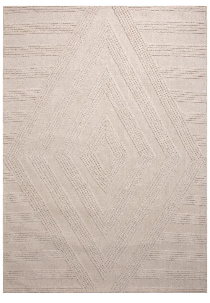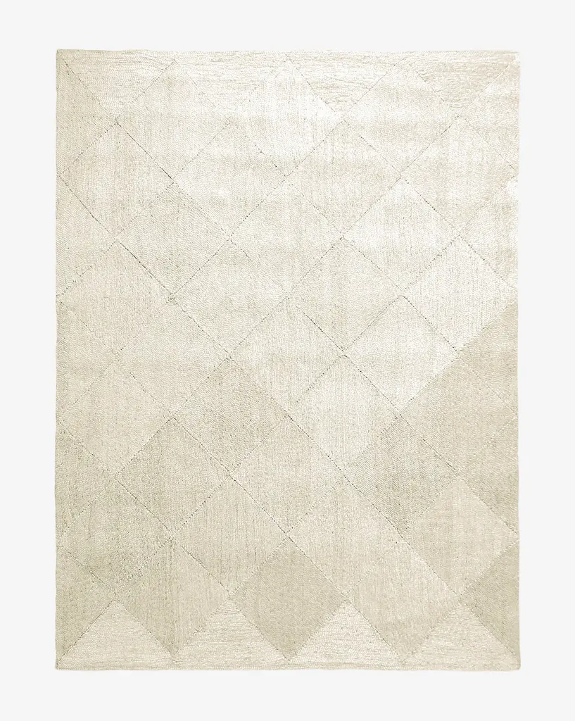 This exquisite rug is crafted from a smooth silk-wool mix. The subtle contrast of the colors in the pattern creates reflections resulting in the illusion of multiple perspectives. The inspiration for this piece comes from early computer graphics from the 60s. The use of the traditional Sardinian weaving technique, enhanced by the natural materials used, creates a fascinating combination of both minimalist and complex styles.