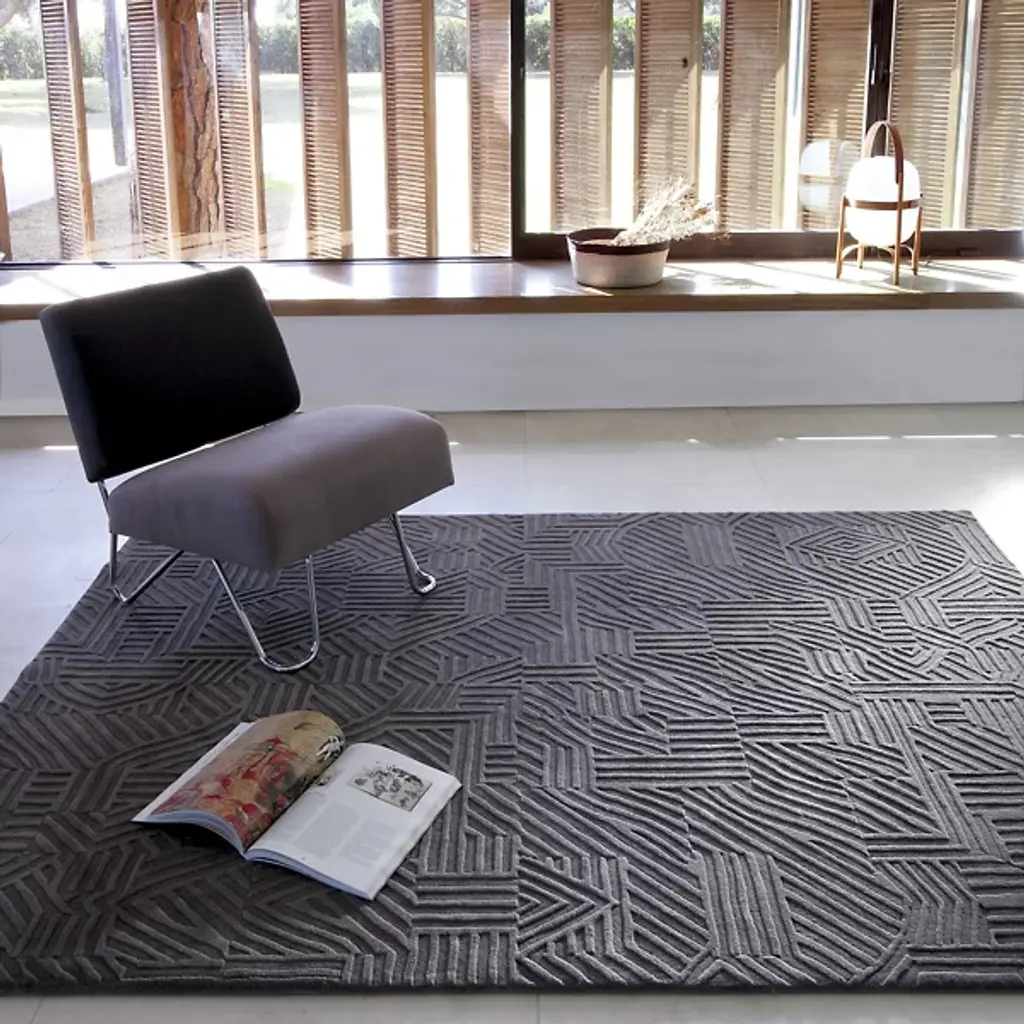 The neutral color options of the Nanimarquina African Pattern Rug mean that the pattern is the real focus. The visual effect is dazzling and dynamic, as the intricate raised stripes form squares, circles and diamonds, flow into adjacent segments and/or break against others. The texture underfoot is equally impressive. The entire rug is hand tufted using soft new wool.