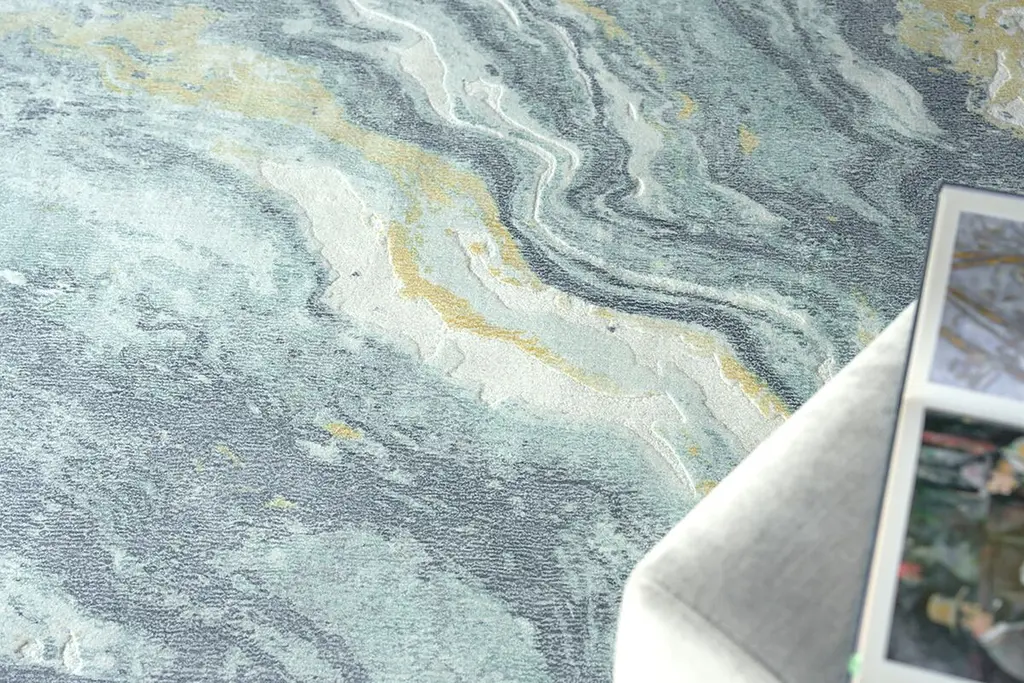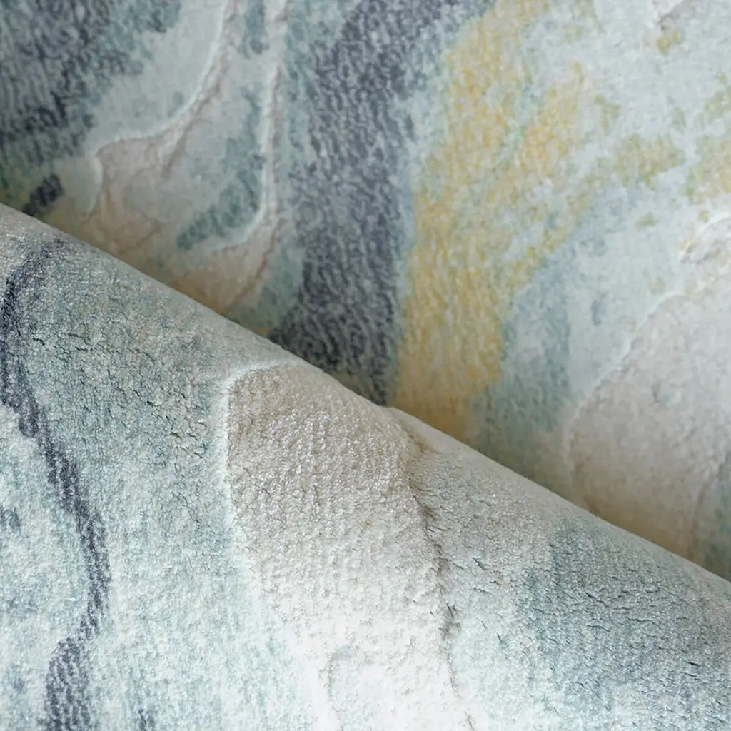 Colorful large-scale design that creates a dramatic impact in any space. This grouping would be ideal for a living room or dining room where it can be the focal point of the space. The soft dense pile provides comfort and a richness underfoot.