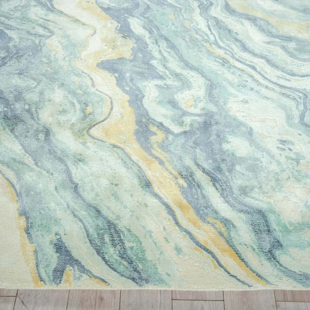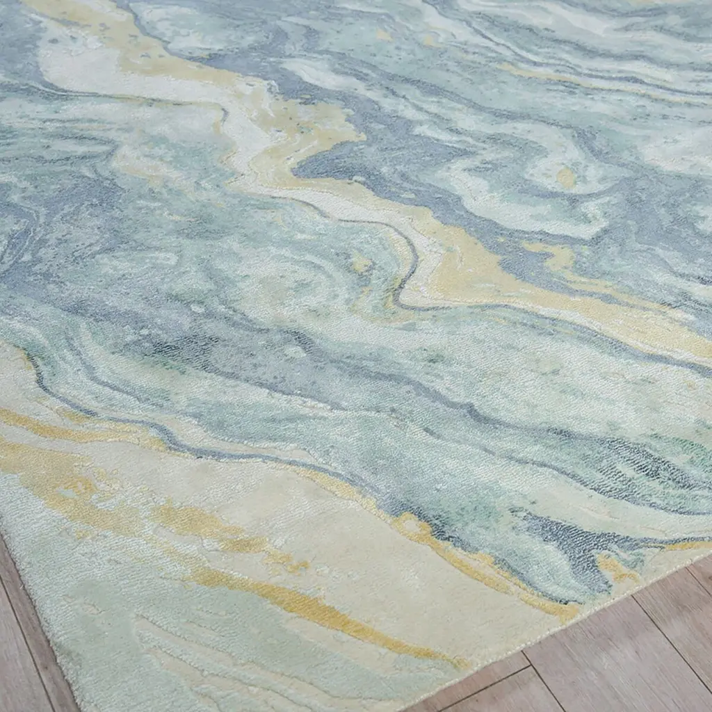 Colorful large-scale design that creates a dramatic impact in any space. This grouping would be ideal for a living room or dining room where it can be the focal point of the space. The soft dense pile provides comfort and a richness underfoot.