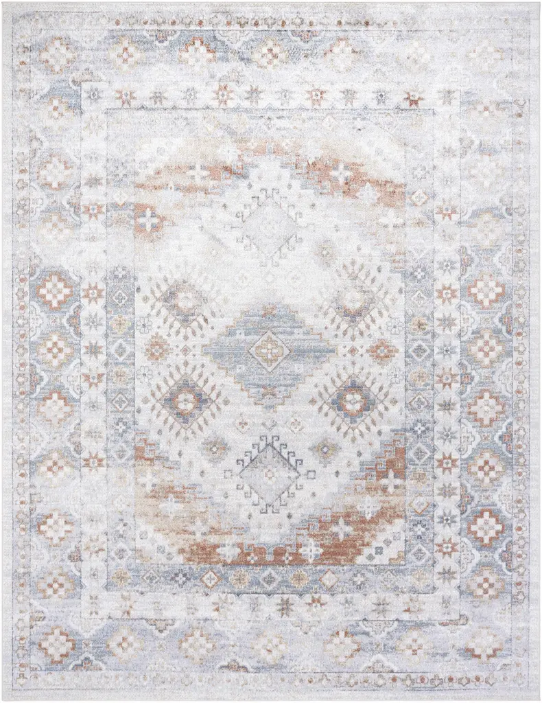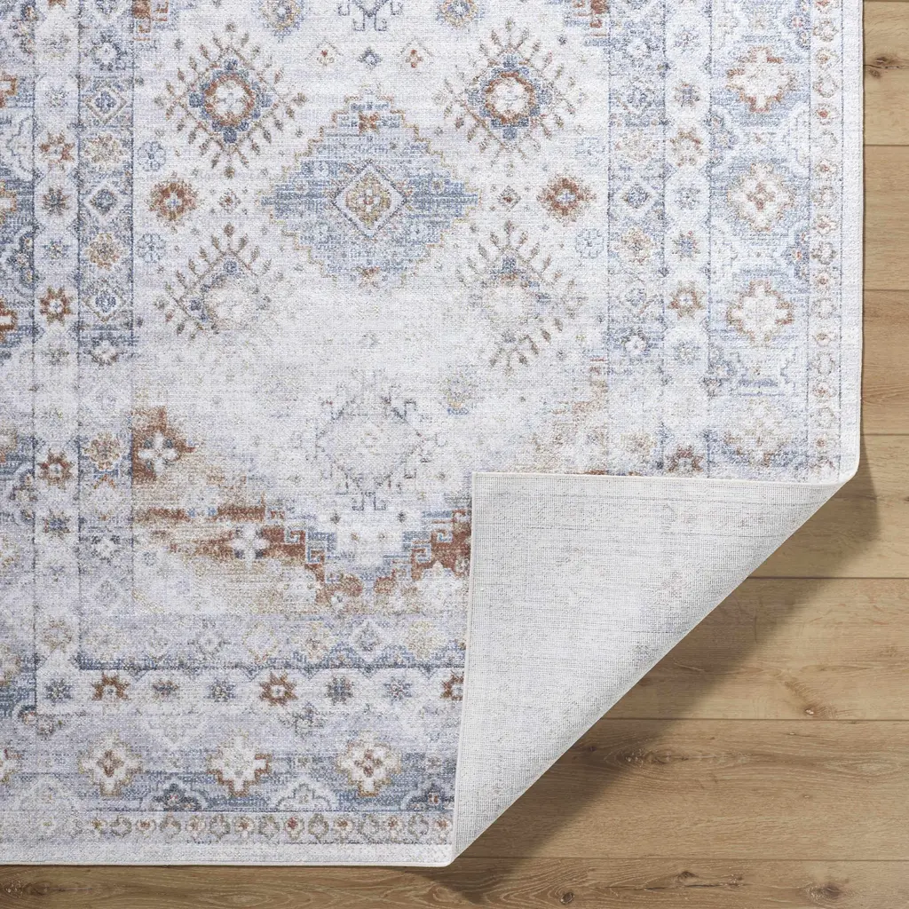 Agaton Blue & Brown Washable Area Rug - 6'7" X 9' Rectangle