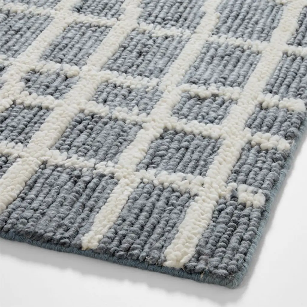 Inspired by traditional rug designs woven by nomadic people of Morocco's Atlas Mountains, our Agen rug layers the room with texture, dimension and depth. Skilled artisans weave Agen by hand to create small loops and varying pile heights, resulting in an irregular grid pattern in blue and ivory that looks timeless and modern. Made of pure wool, the heirloom-quality rug feels amazing underfoot, resists shedding and will last for years.Try it on first. Since color representation may vary by screen, using a swatch is an easy way to see exactly how your favorite rugs will look in your home. Our rug swatches ship free and can be returned online or at any store for a full refund.6'x9' rugs and 8'x10' rugs can be ordered online and picked up in a store near you. It's fast, easy and free.For larger rugs, order online and arrange a convenient delivery or warehouse pickup.
