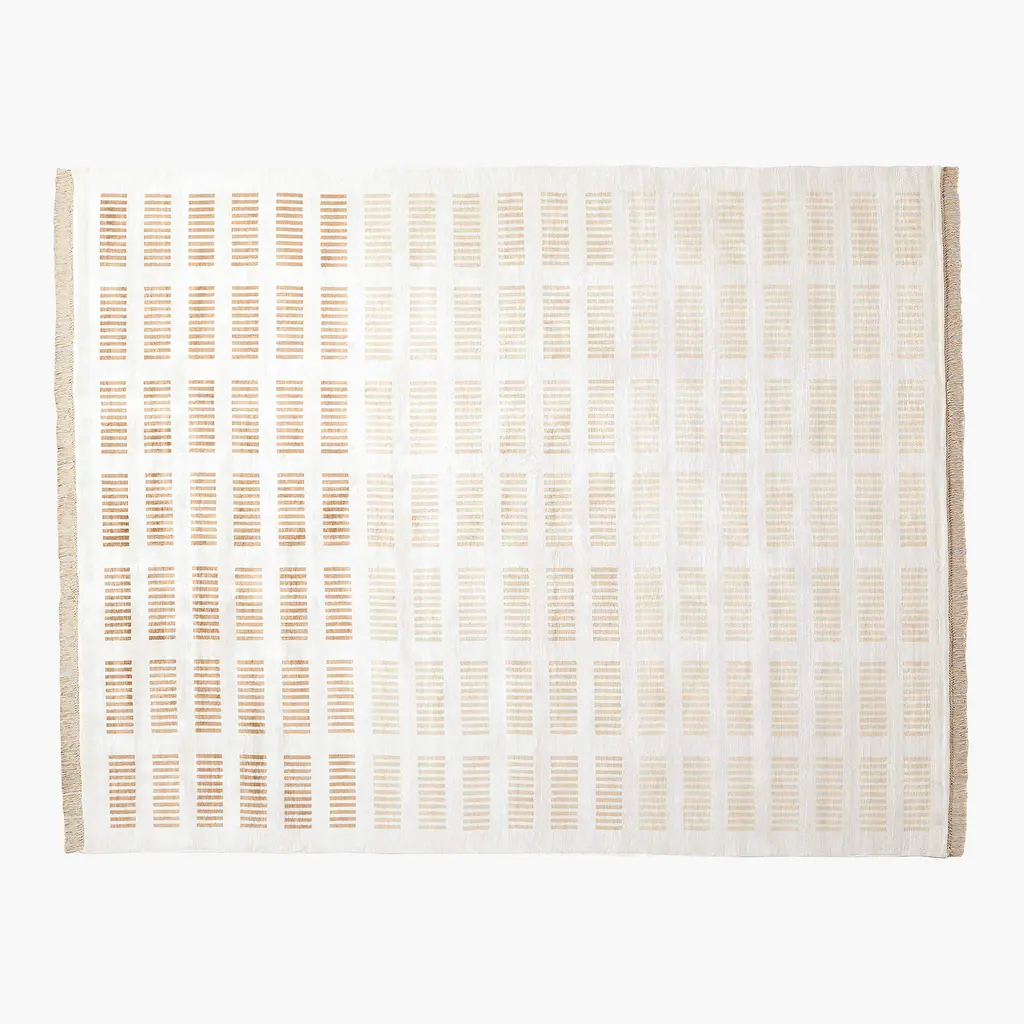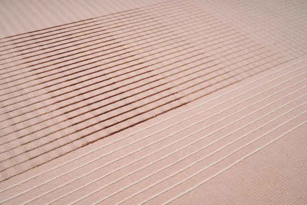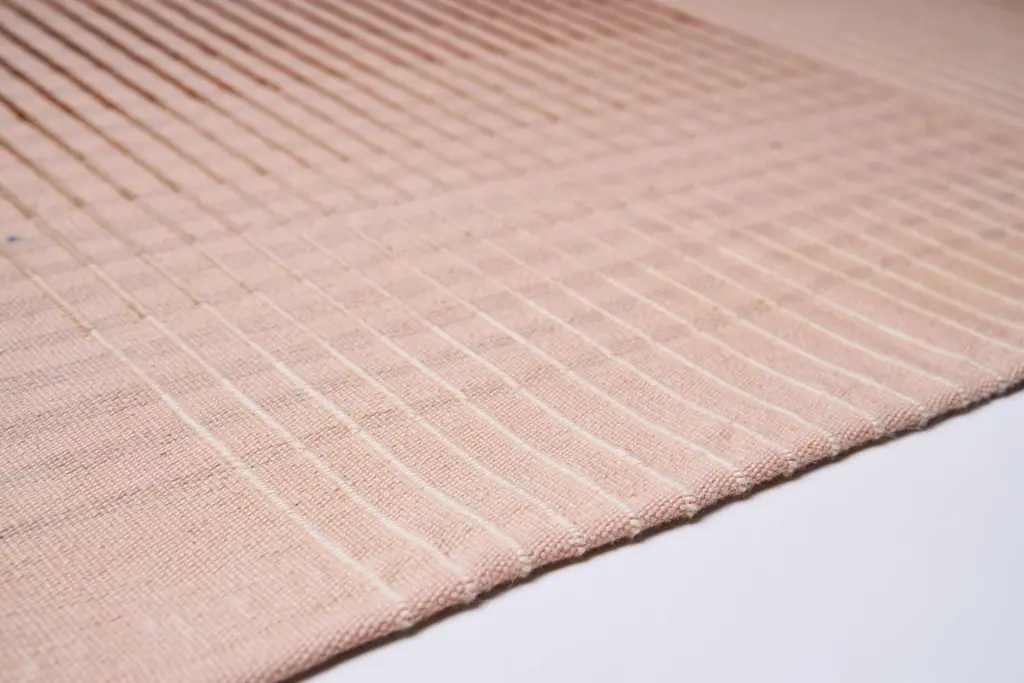 Inspired by Agnes Martin's delicate lines and the Japanese philosophy of Ma, AGNES contemporary handwoven area rug collection conveys a sense of simplicity and elegance. Its minimal design invites contemplation and serenity, a space for the mind to find peace and quietude. Woven with the warmth of wool and the spirit of nature, each thread celebrates the beauty of stillness.Hand crafted with meticulous detail, the Agnes contemporary area rugs are tactile canvases, bringing a lightness and airiness to the space while remaining grounded in their natural, textural beauty.Agnes in Muted Pink is a top quality flat-weave indoor area rug handwoven with kilim technique in the villages of Turkey by traditional women weavers. Material is 100% Anatolian sheep wool.