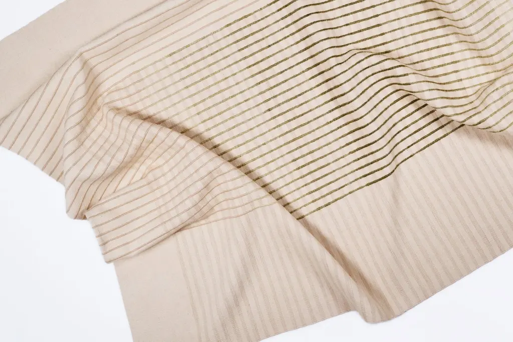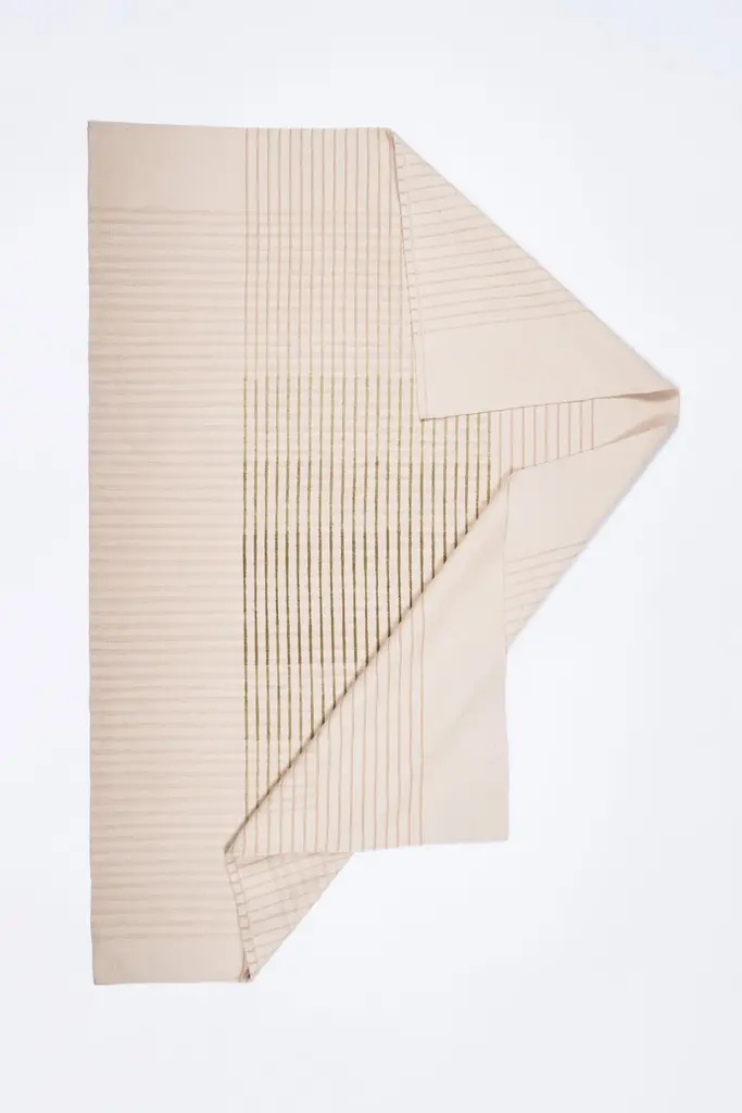 Inspired by Agnes Martin's delicate lines and the Japanese philosophy of Ma, AGNES contemporary handwoven area rug collection conveys a sense of simplicity and elegance. Its minimal design invites contemplation and serenity, a space for the mind to find peace and quietude. Woven with the warmth of wool and the spirit of nature, each thread celebrates the beauty of stillness.Hand crafted with meticulous detail, the Agnes contemporary area rugs are tactile canvases, bringing a lightness and airiness to the space while remaining grounded in their natural, textural beauty.Agnes in Ivory and Green is a top quality flat-weave indoor area rug handwoven with kilim technique in the villages of Turkey by traditional women weavers. Material is 100% Anatolian sheep wool.