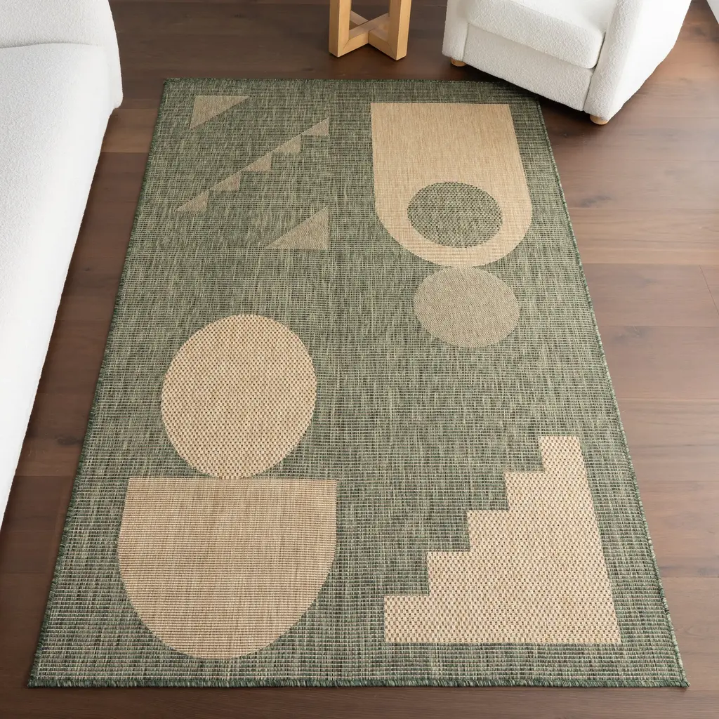 Aila Abstract Geometric Indoor/outdoor Rug | Green - 9' 6" X 12'