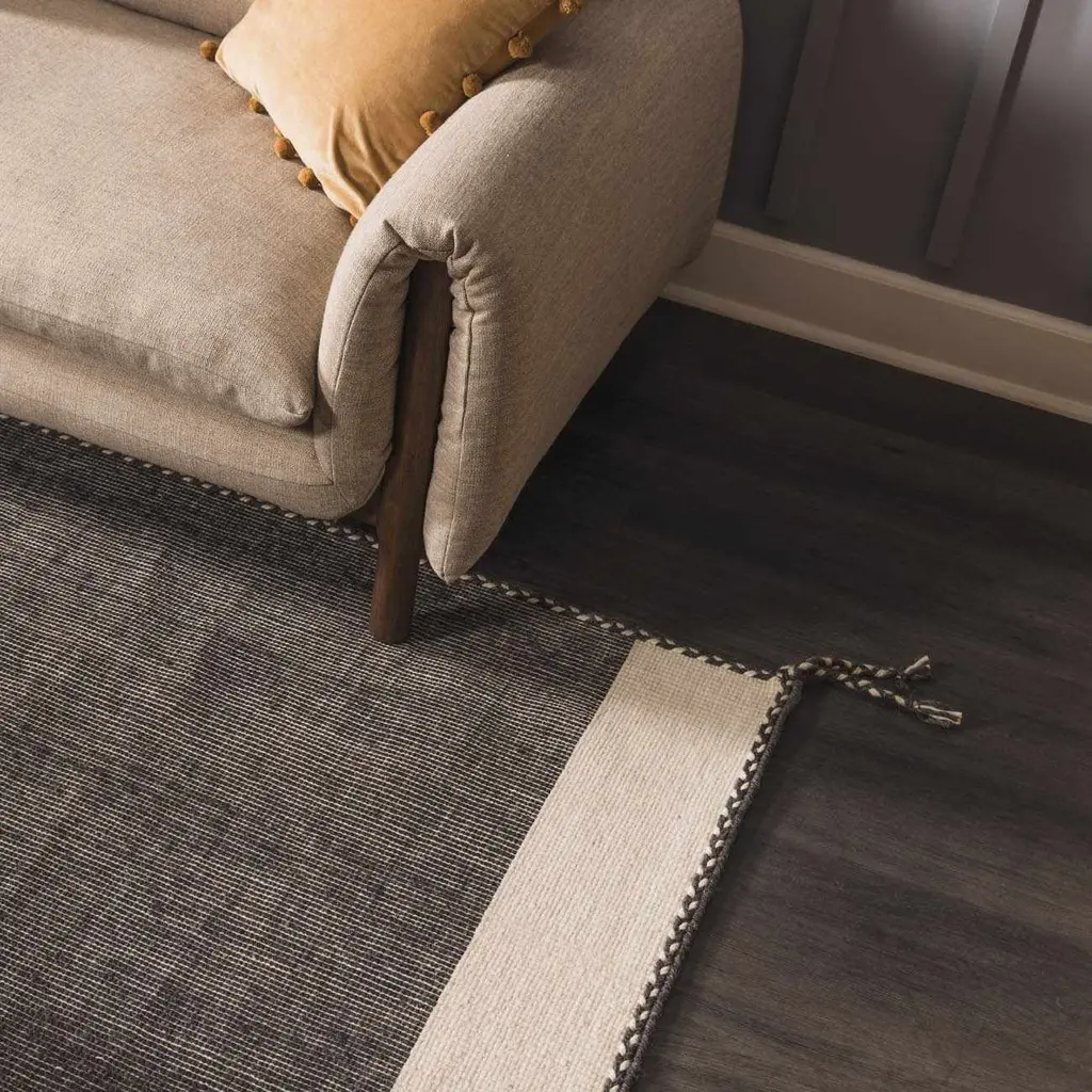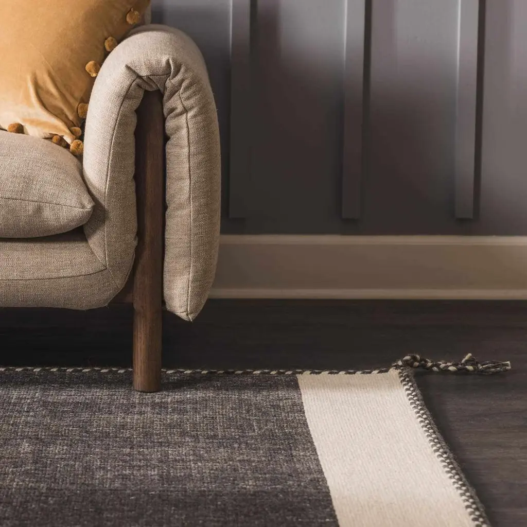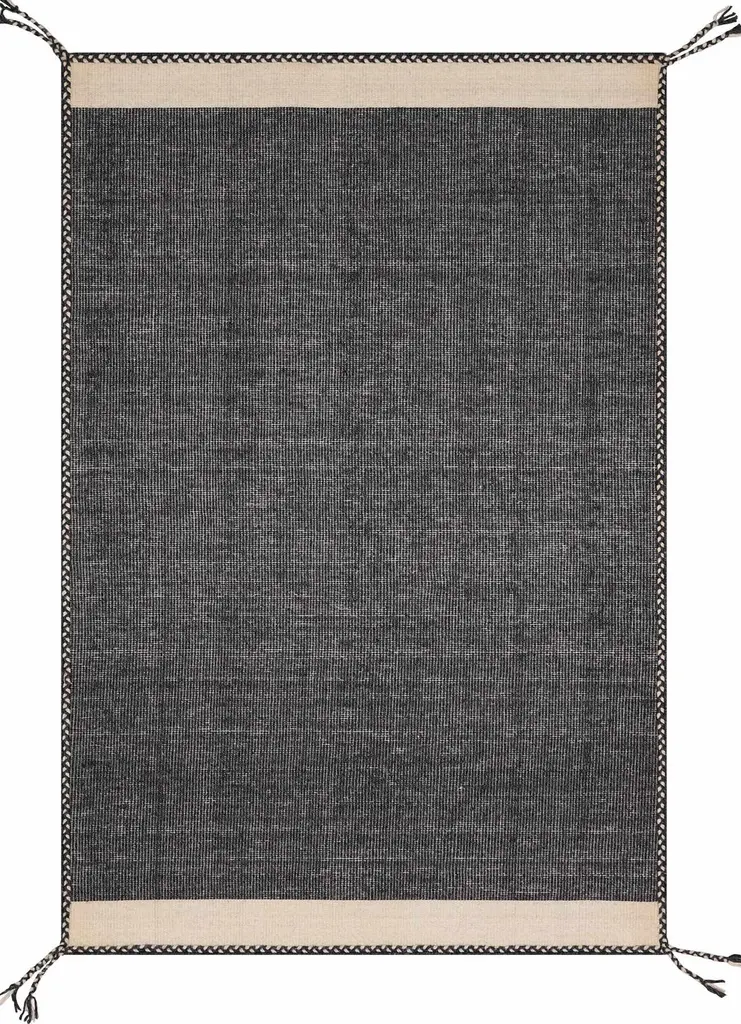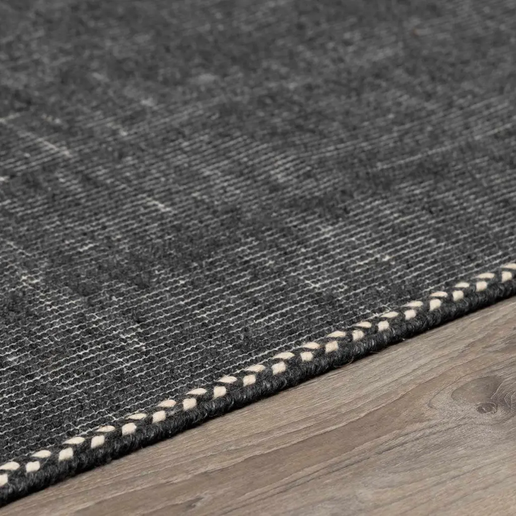 Ailie Bordered Charcoal Wool Rug - 6' X 9' Rectangle