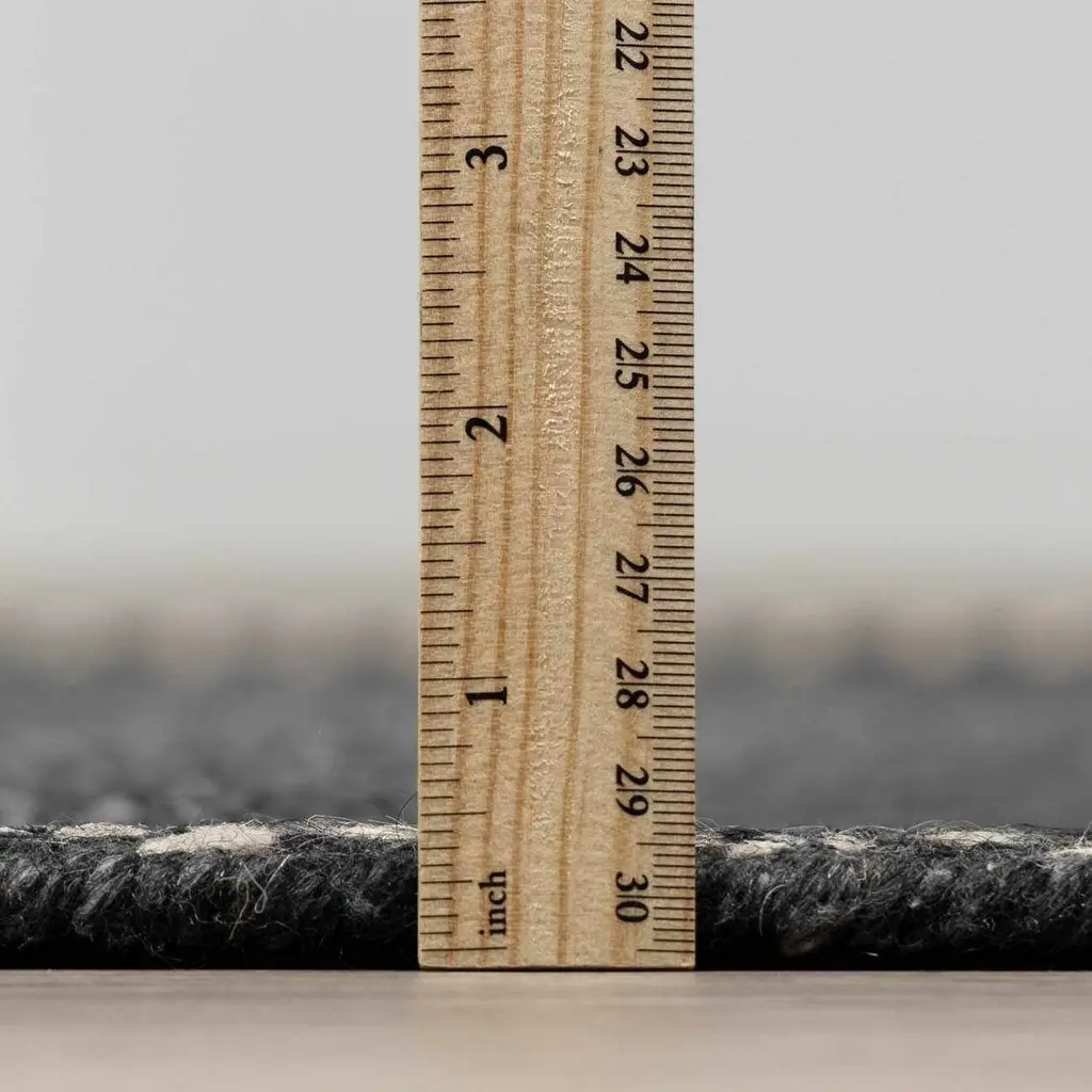 Collection: Ailie Colors: Beige, Black Construction: Hand Woven Material: 100% Wool Pile: Medium Pile Pile Height: 0.25" Styles: Transitional,Bohemian Made In: India Thickness: 0.25" Fringe Length: 5" Price Range: $$$$$ (Affordable)