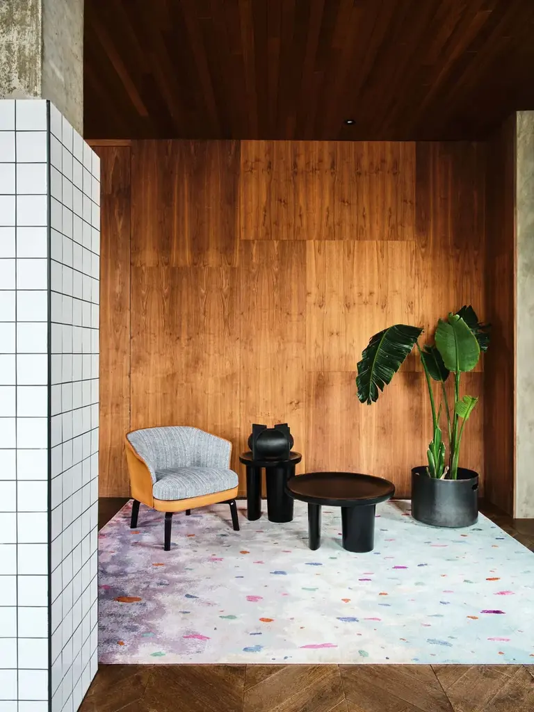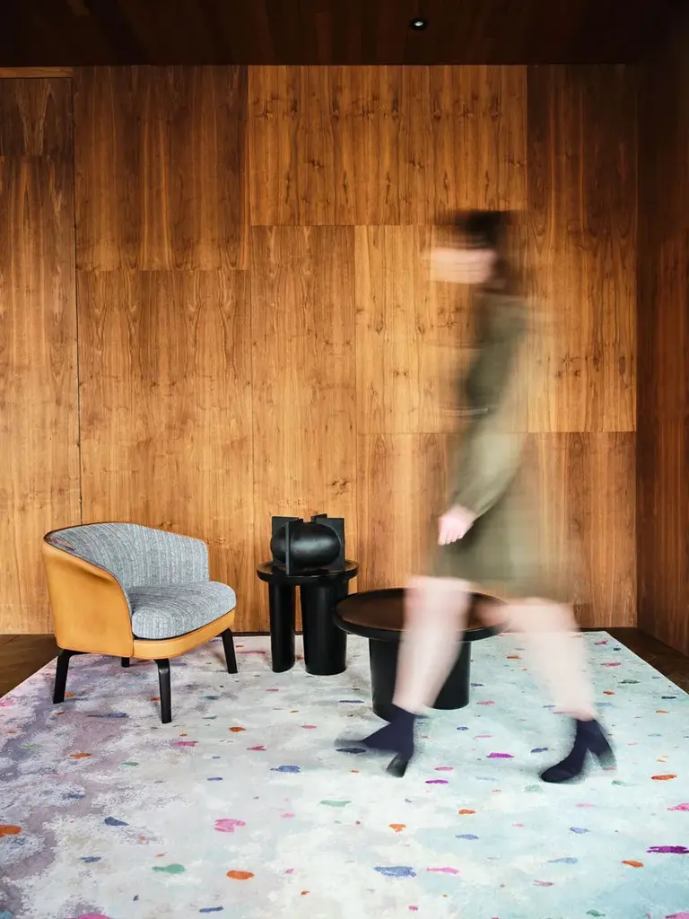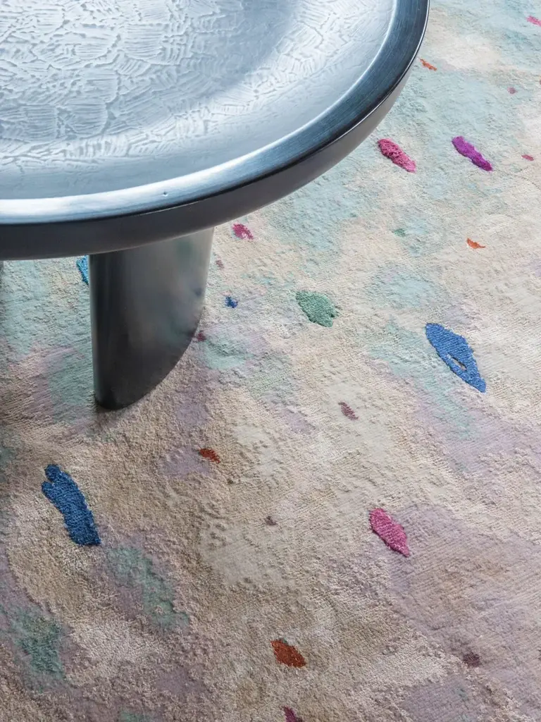Air is a hand-knotted rectangular rug in wool and silk.In the Fabulous collection, mysterious plants are woven into magical hues; rays of light and other immaterial and atmospheric components are rendered by the richness of wool and silk threads in the weave of the rugs. The unique patterns of the rugs surprise with their sophistication and simplicity at the same time.Inspired by reflections of light, the hand-knotted Mirror rug contains 75 % wool and 25 % bamboo silk. The design details are shaped by a 80 knots/inch² knot density and a 4 to 5 mm pile height.