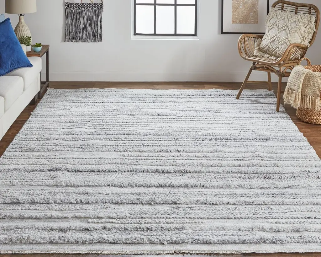 The handwoven Akton Collection comes in exclusive colors and is curated by interior and product designer, Thom Filicia. The varying hand knots bring a high-low profile to the area rug. In neutral colors of beige, grey, charcoal, and brown, the collection is relaxed and easy to care for. The braided appearance of the knots combined with fringe edged detail brings texture to any room.