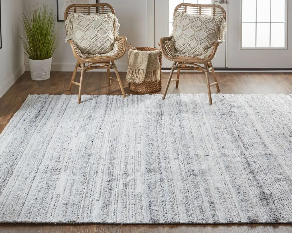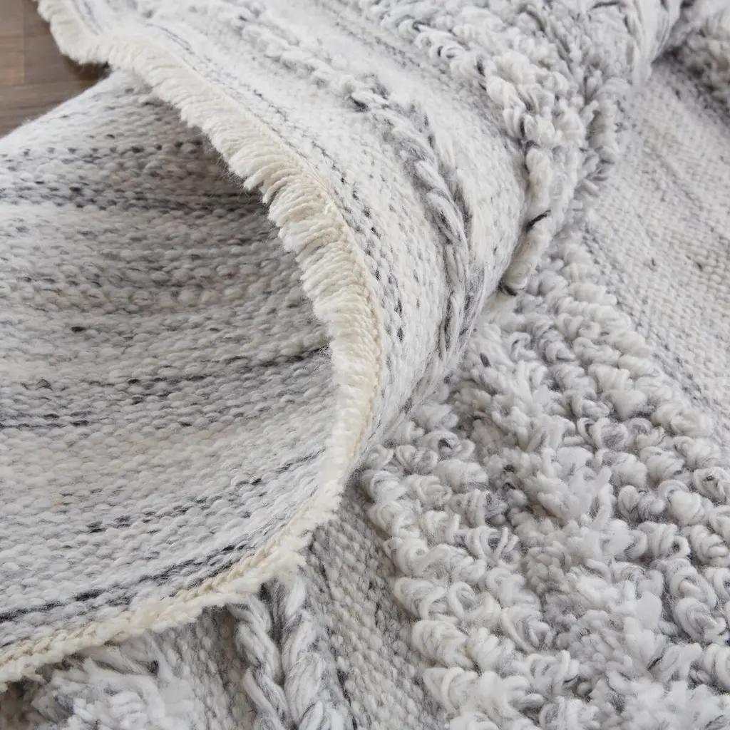 The handwoven Akton Collection comes in exclusive colors and is curated by interior and product designer, Thom Filicia. The varying hand knots bring a high-low profile to the area rug. In neutral colors of beige, grey, charcoal, and brown, the collection is relaxed and easy to care for. The braided appearance of the knots combined with fringe edged detail brings texture to any room.