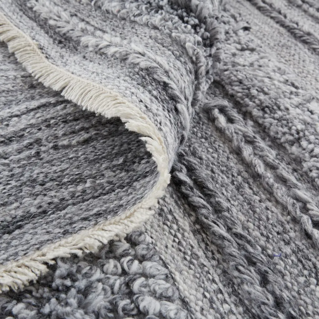 The handwoven Akton Collection comes in exclusive colors and is curated by interior and product designer, Thom Filicia. The varying hand knots bring a high-low profile to the area rug. In neutral colors of beige, grey, charcoal, and brown, the collection is relaxed and easy to care for. The braided appearance of the knots combined with fringe edged detail brings texture to any room.