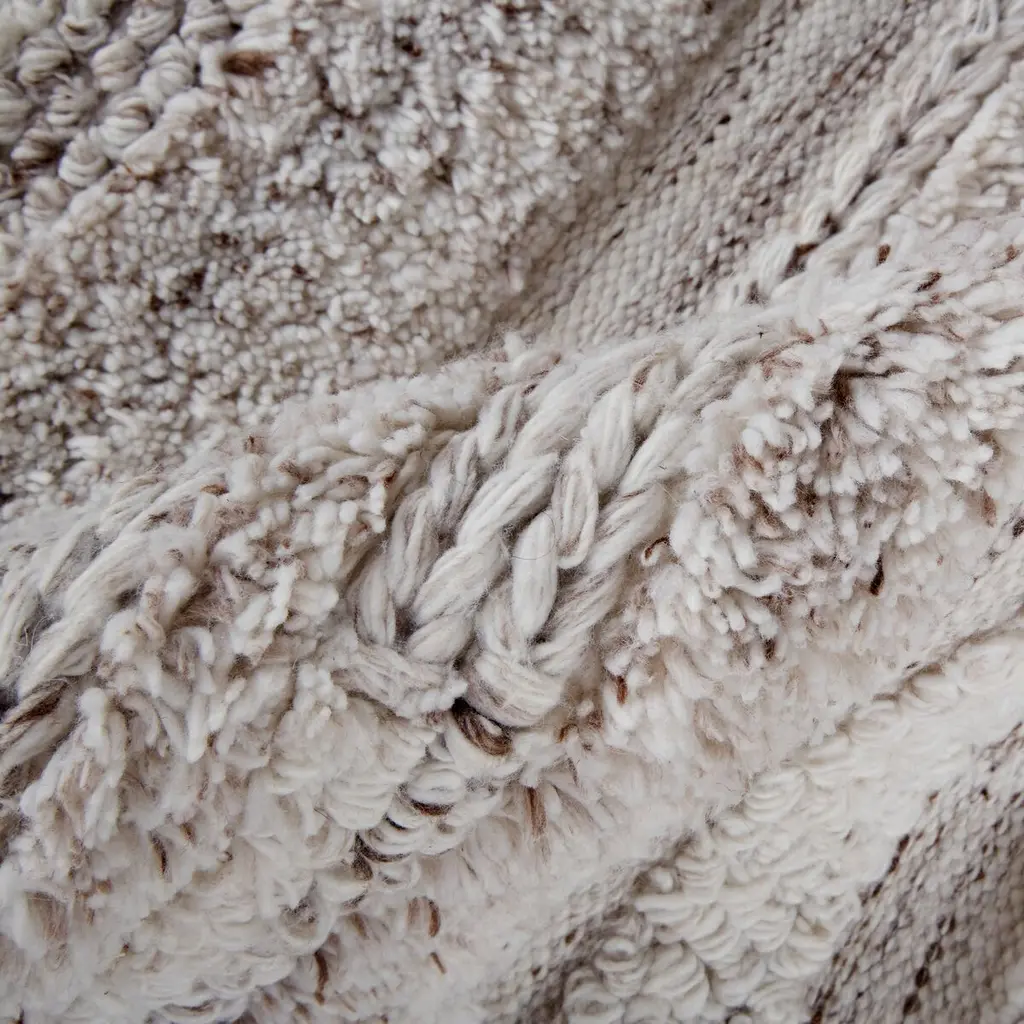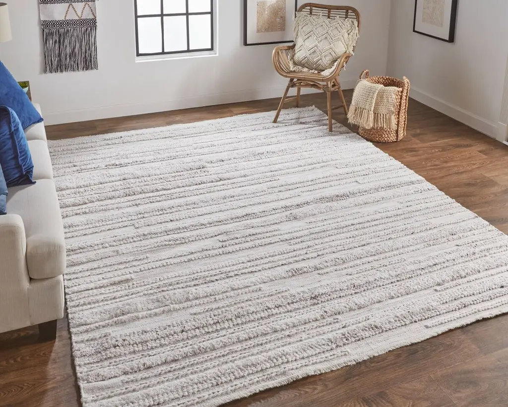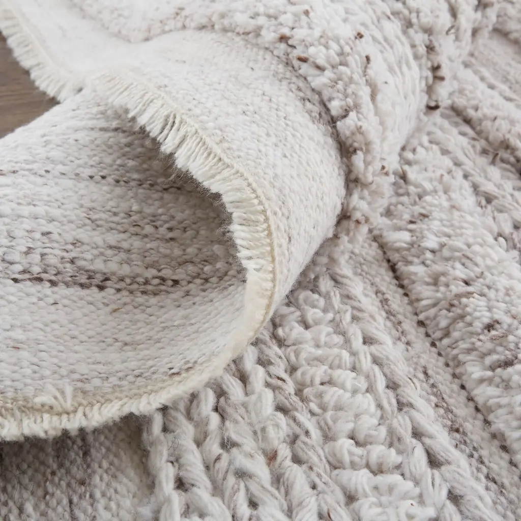 The handwoven Akton Collection comes in exclusive colors and is curated by interior and product designer, Thom Filicia. The varying hand knots bring a high-low profile to the area rug. In neutral colors of beige, grey, charcoal, and brown, the collection is relaxed and easy to care for. The braided appearance of the knots combined with fringe edged detail brings texture to any room.