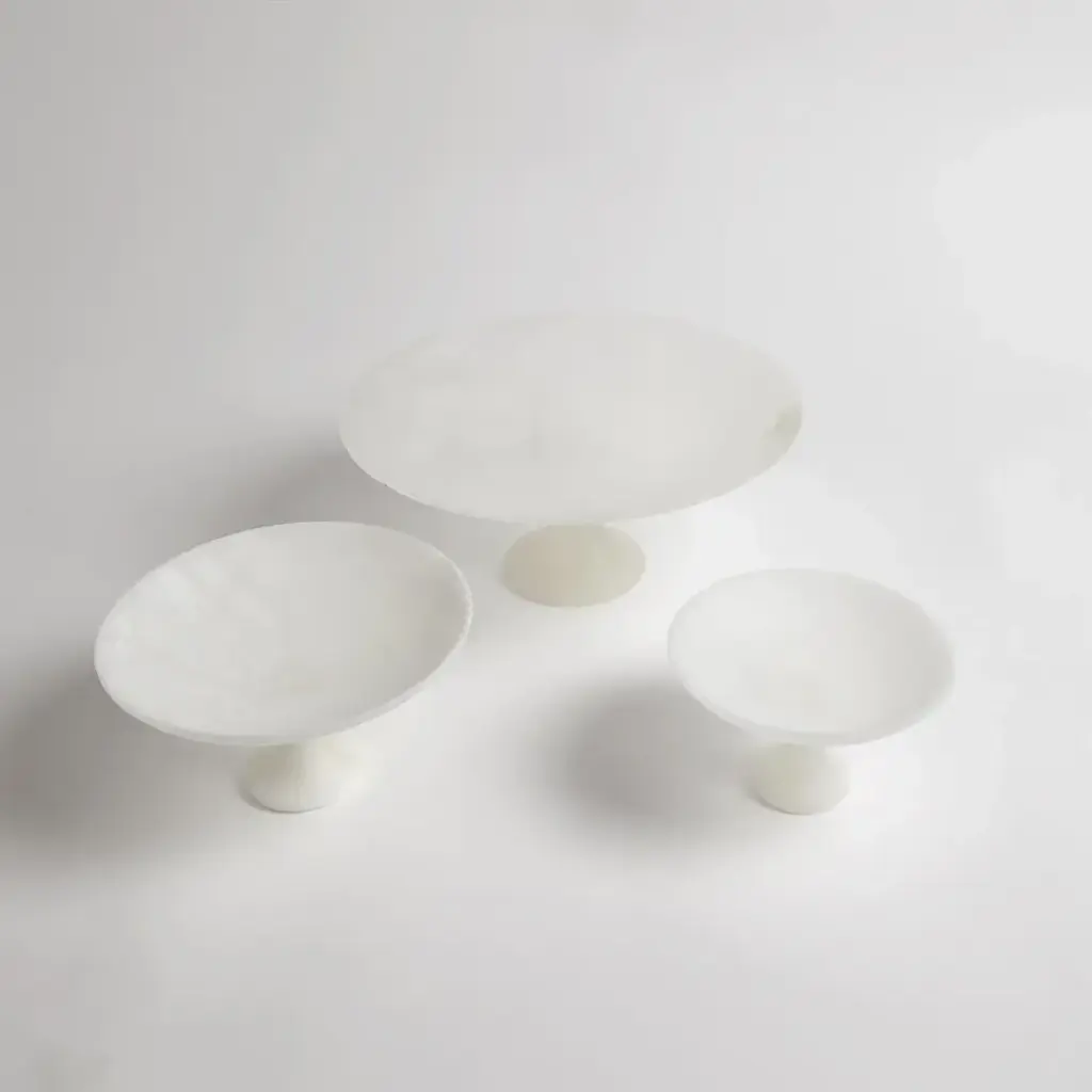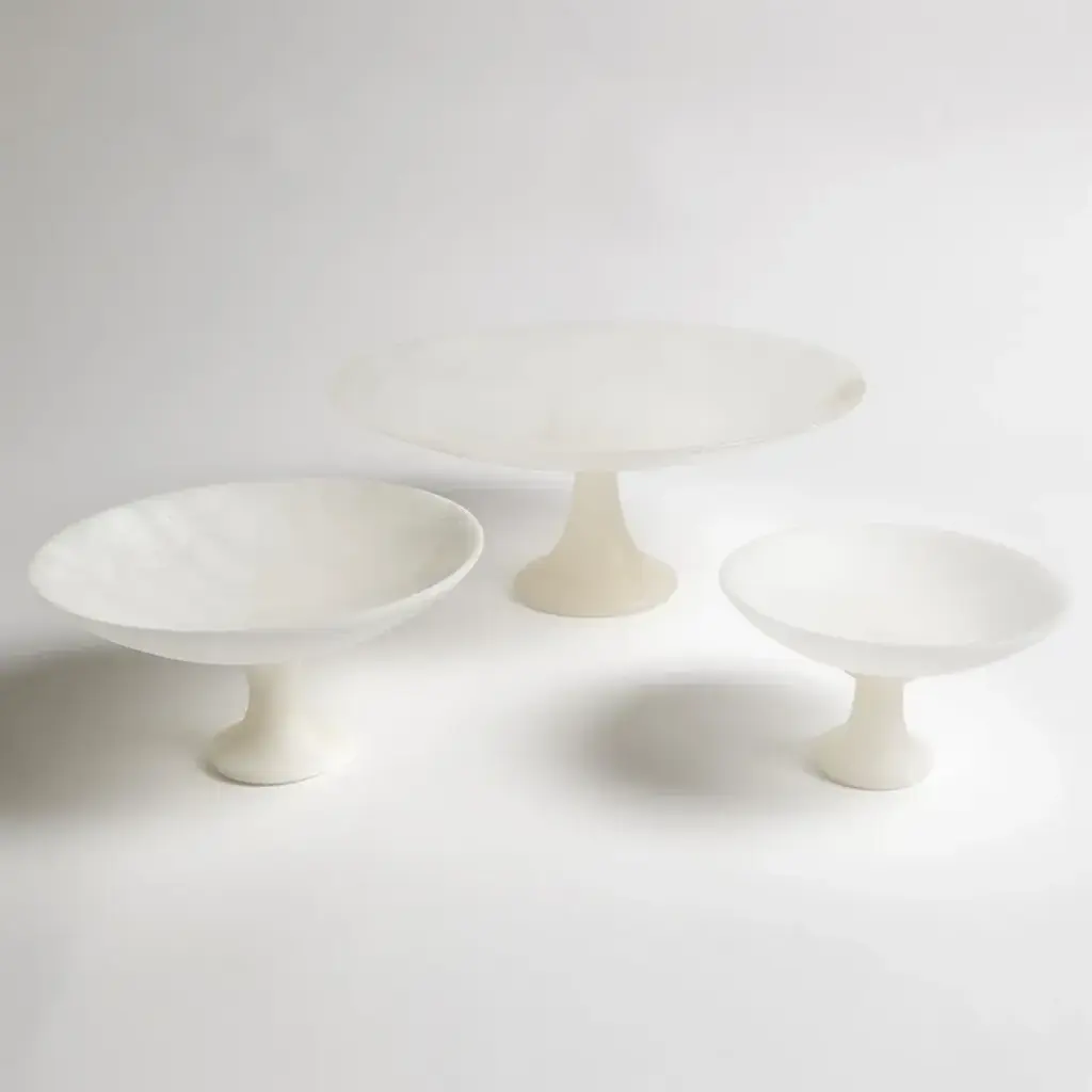 The Ancient Egyptians were the first known civilization to revere alabaster for its translucency and beauty. The mineral is not a hard stone and lends itself perfectly to intricate carving. Our Alabaster Compotes are made by a family who has been working in alabaster for centuries. As alabaster is a natural product, please be aware that there will always be variations in veining and color. This is to be expected and makes every alabaster product uniquely your own. From a fashion forward perspective, Global Views offers accessories, furniture, statement lighting, and an assortment of rugs and mirrors to add beauty and joy to your home.