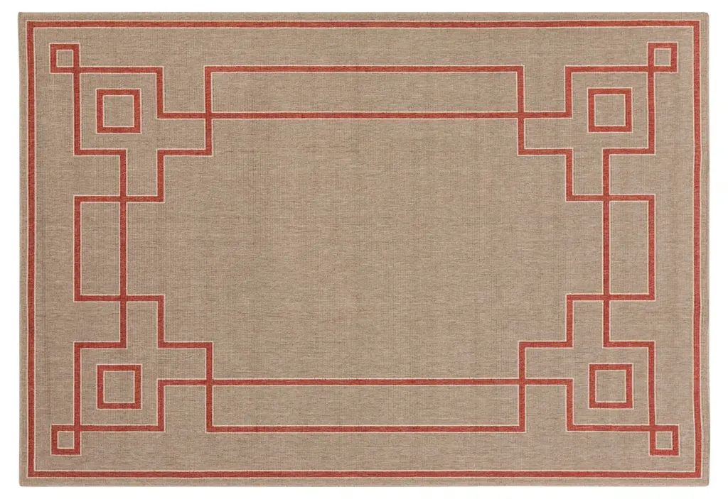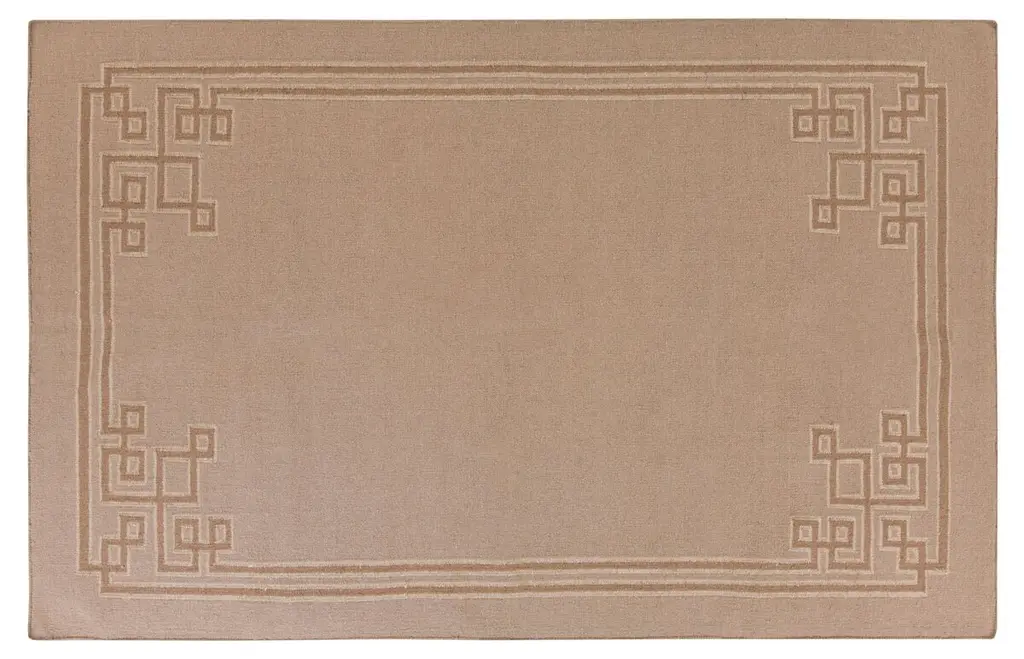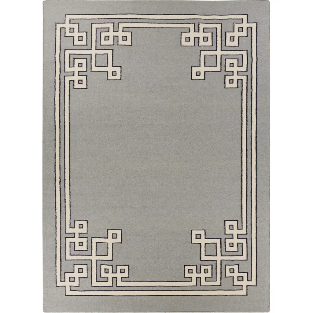 A classic geometric border in a tonal hue frames the elegant gray ground of this handwoven flat-weave rug. A rug pad is recommended to keep this foundation securely in place.