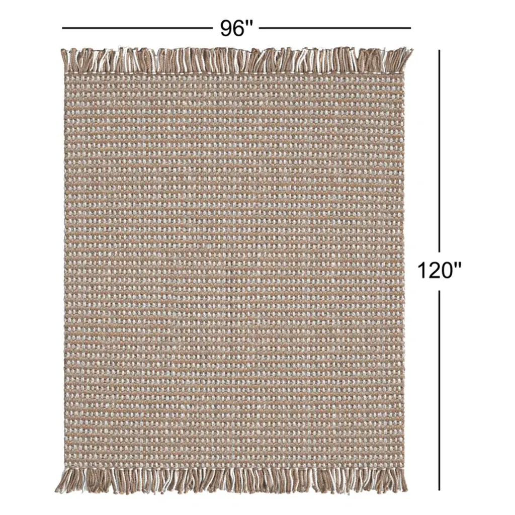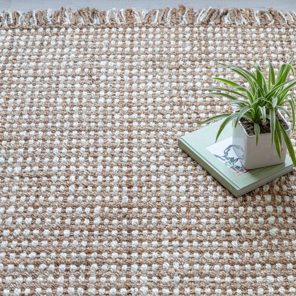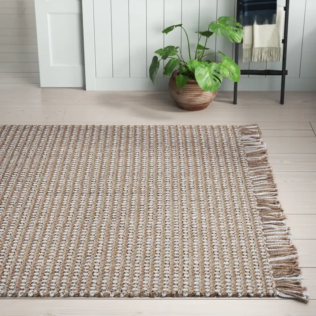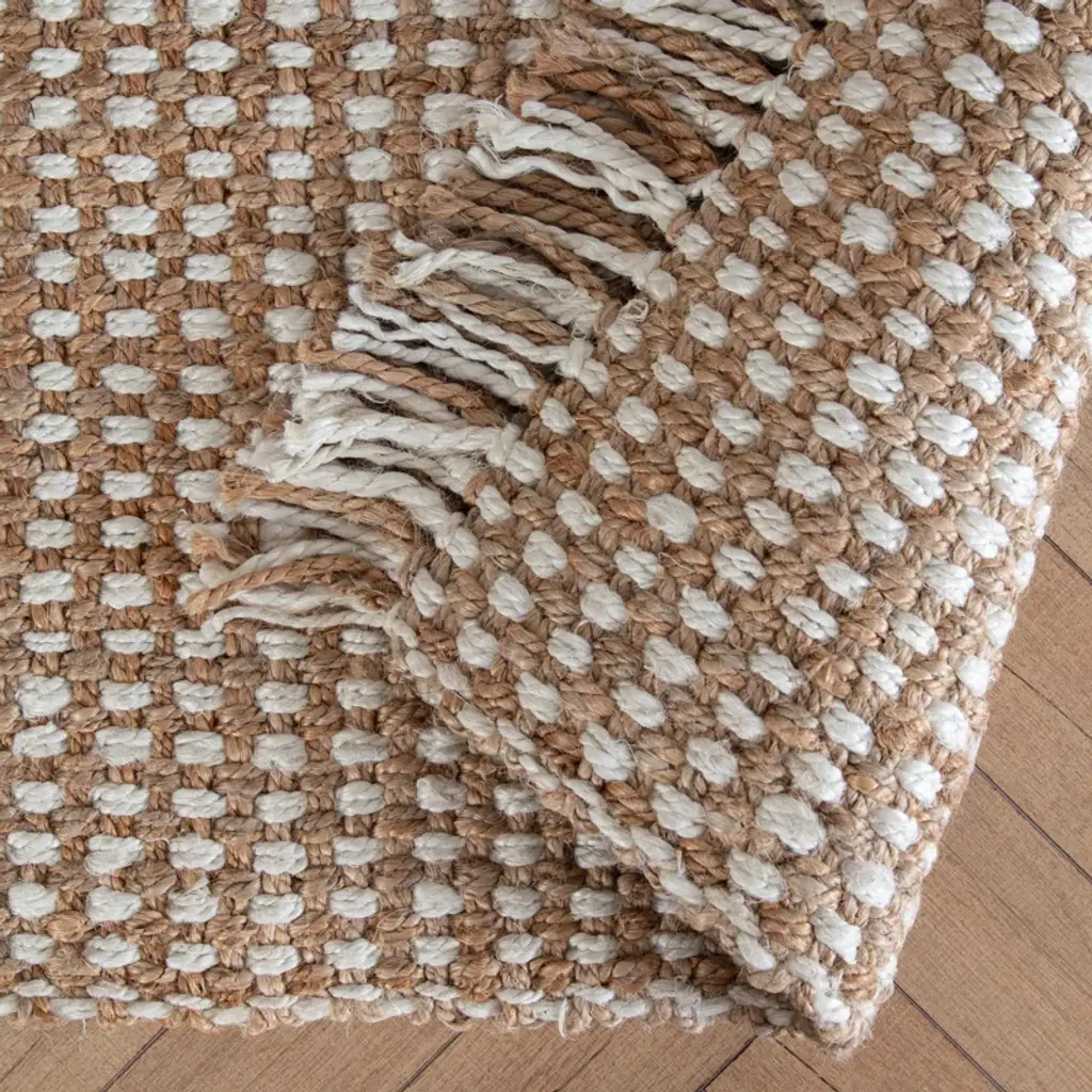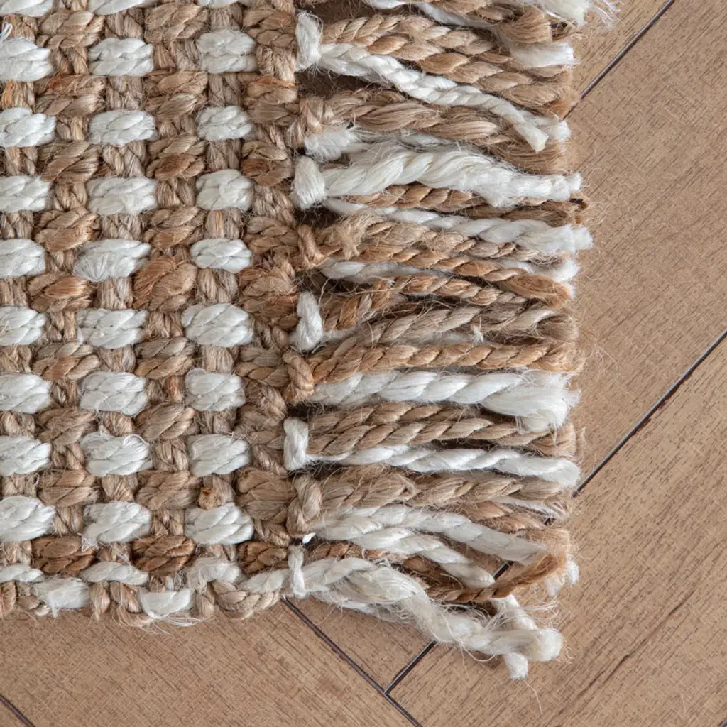 Add a touch of warmth and texture to your floors with this hand-loomed jute and sisal area rug. Featuring a neutral ivory and tan color palette, it's a versatile choice that complements a variety of decor styles. The hand-woven construction creates a natural, organic feel, while the fringed edges and tassels add a playful touch. This rug is floor heating safe and stain-resistant, making it a great option for busy households. To keep it looking fresh, simply vacuum with no beater bar and spot clean with a dry cloth.