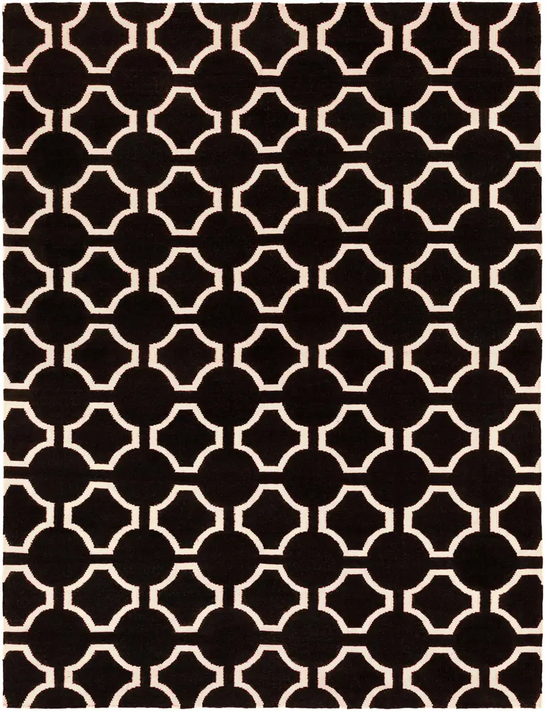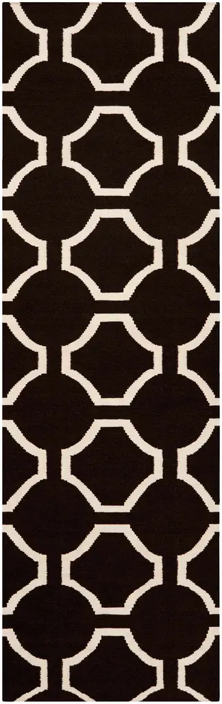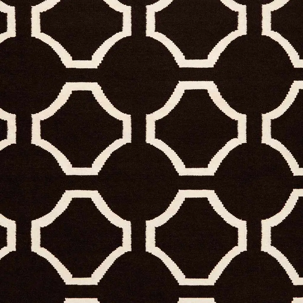 Collection: Albemarle Colors: Black, Peach Construction: Hand Woven Material: 100% Wool Pile: No Pile Styles: Transitional Made In: India Thickness: 0.16" Price Range: $$$$$ (Most Affordable)