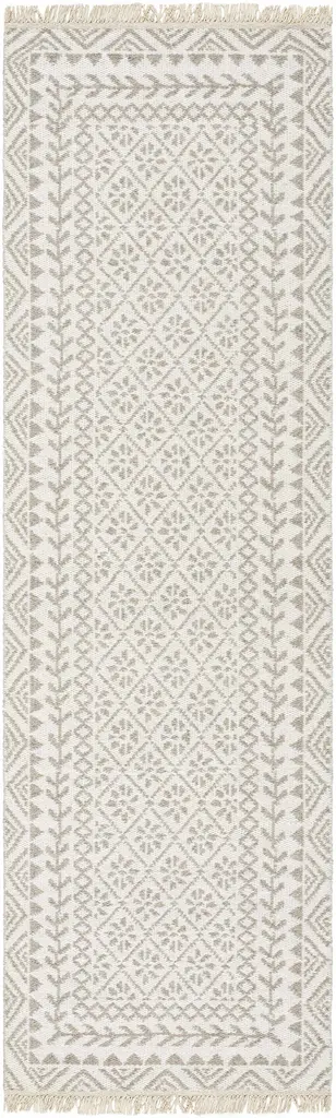 Collection: Albus Colors: Light Brown, Gray, Medium Brown Construction: Hand Woven Material: 100% Wool Pile: No Pile Styles: Transitional,Bohemian Made In: India Thickness: 0.4" Fringe Length: 2" Price Range: $$$$$ (Affordable)