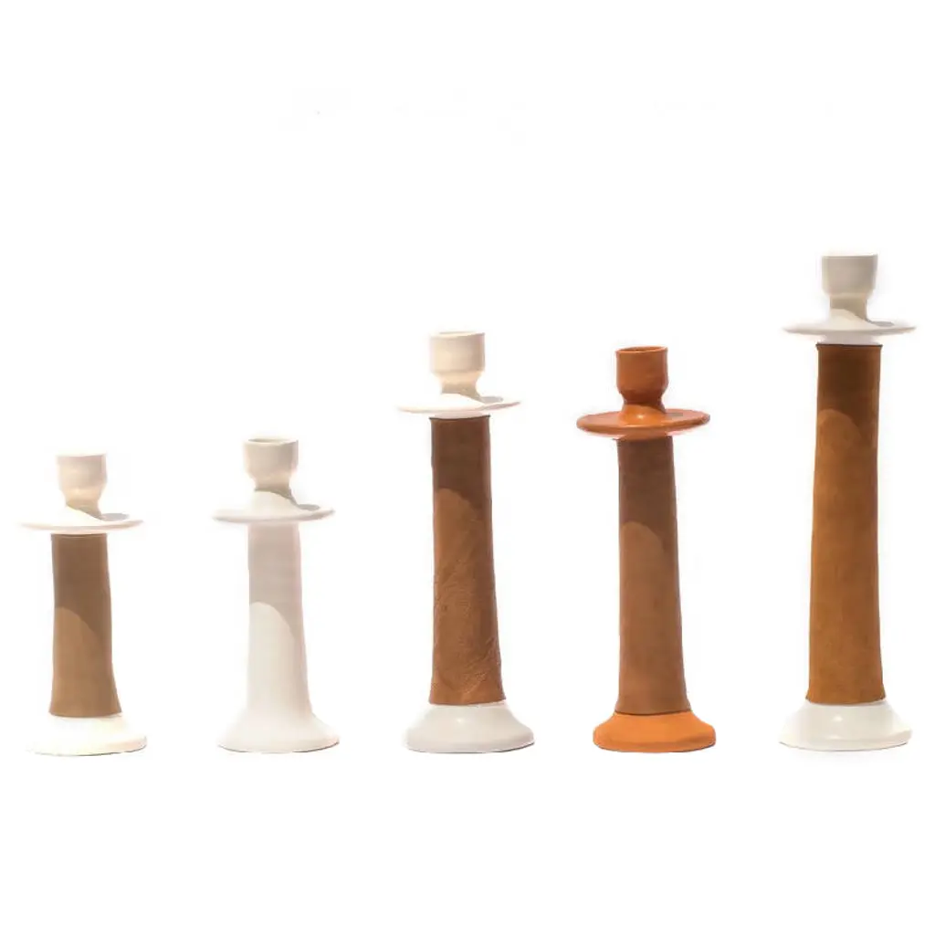 Alcantara Frederic, Medium Leather Wrapped Candle Holder
