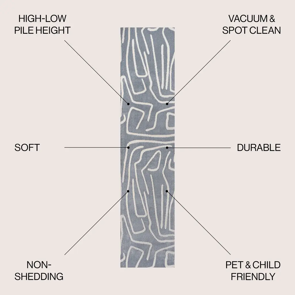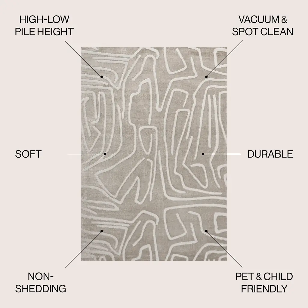 Inspired by modern Scandinavian style, this abstract rug features a bold pattern of scribbled lines. The two-tone design is woven in soft, plush polyester, with a high-low pile that accentuates the pattern. This versatile rug is a family-friendly option for the living room, dining room or bedroom. Please note that variations in the rug's appearance may occur when the fibers are brushed due to natural light reflection and weaving characteristics.