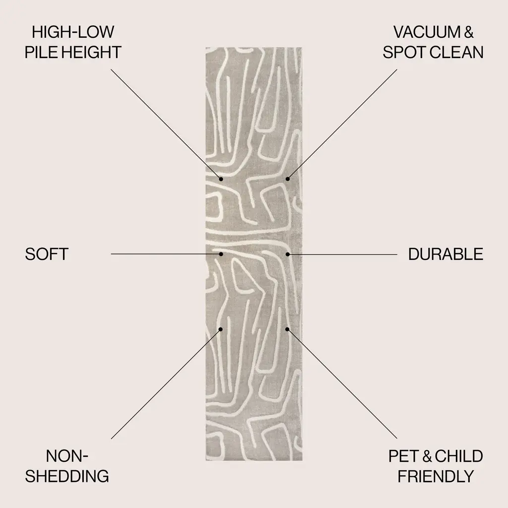 Alcina Modern Scandinavian Graphic Lines High-Low Area Rug - Beige / 2 X 8