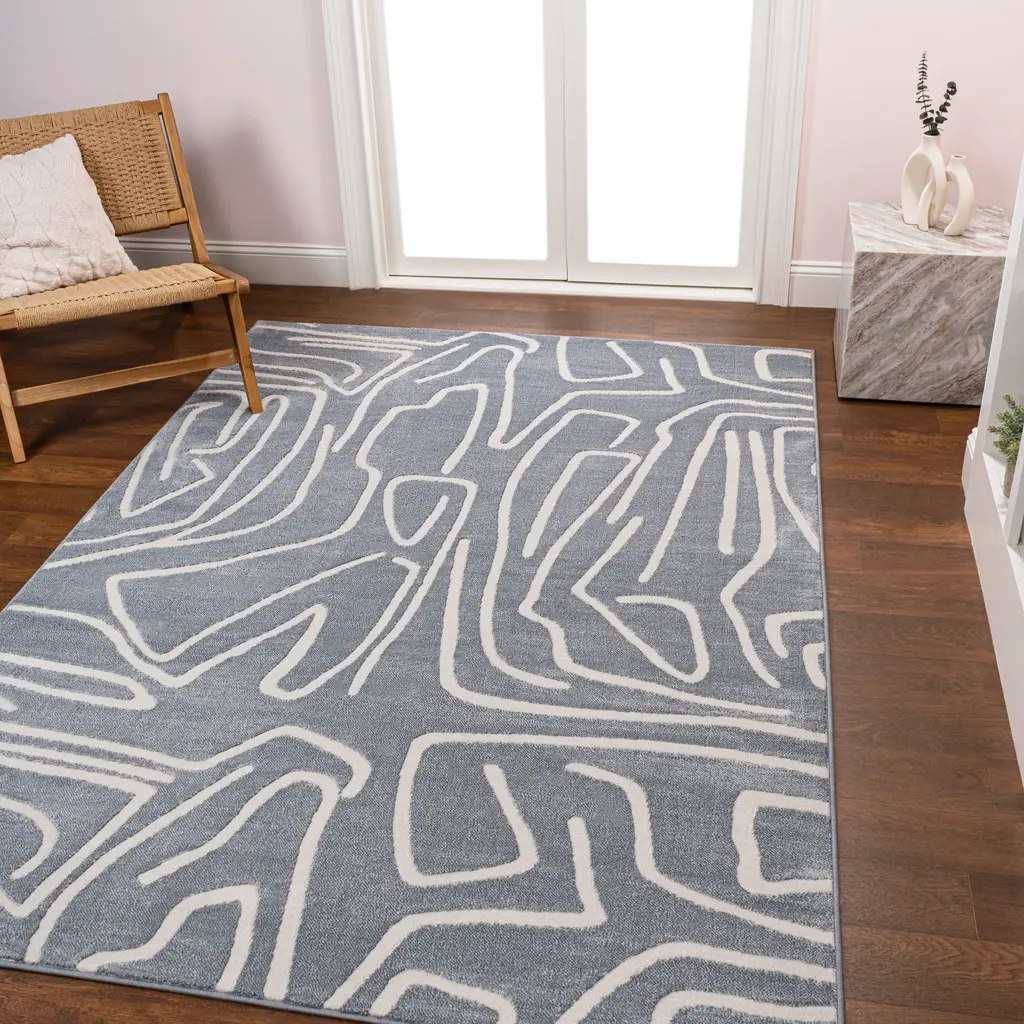 Inspired by modern Scandinavian style, this abstract rug features a bold pattern of scribbled lines. The two-tone design is woven in soft, plush polyester, with a high-low pile that accentuates the pattern. This versatile rug is a family-friendly option for the living room, dining room or bedroom. Please note that variations in the rug's appearance may occur when the fibers are brushed due to natural light reflection and weaving characteristics.