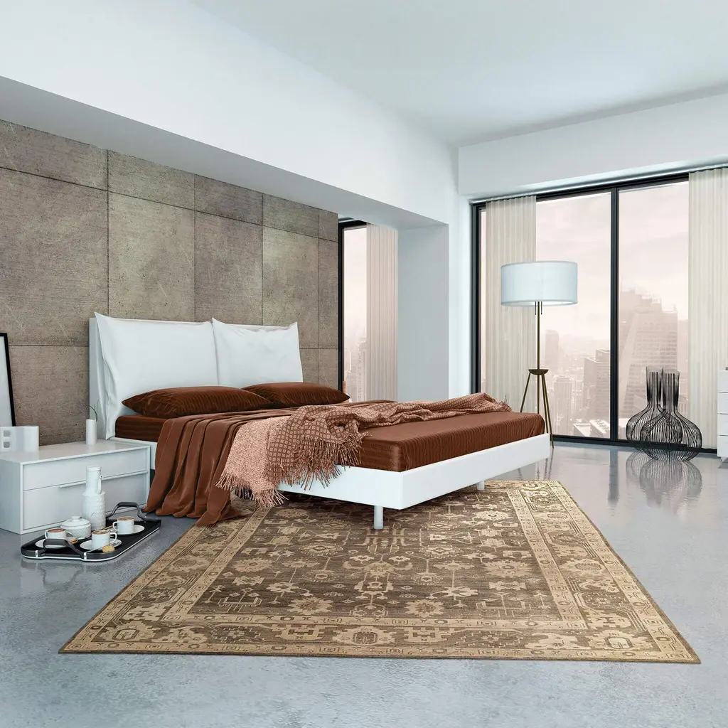 A traditional leaf, vine and botanical design becomes downright dazzling when presented in molten hues of mocha, gold, taupe and ivory. Hand knotted from an outstanding bamboo extruded silk-like pile for a texture and tone that are nothing short of sensational.Evoking the history and intricacies of traditional Persian designs, this antique-inspired collection is hand knotted from luxurious bamboo extruded silk-like fibers for an extravagant texture and tone that exudes a spectacular sumptuousness. Featuring an array of elegant color palettes in blended rich tones. Ships In 7-10 Business Days Ships In 7-10 Business Days Ships In 7-10 Business Days Ships In 7-10 Business Days Rug pad recommended Custom sizes available Hand-knotted pile with a lustrous vintage sheen Excellent durability even under heavy foot traffic Slight variations in color from product to product are natural characteristics of high quality handcrafted home decor. Your product may not exactly match what is pictured on this page.