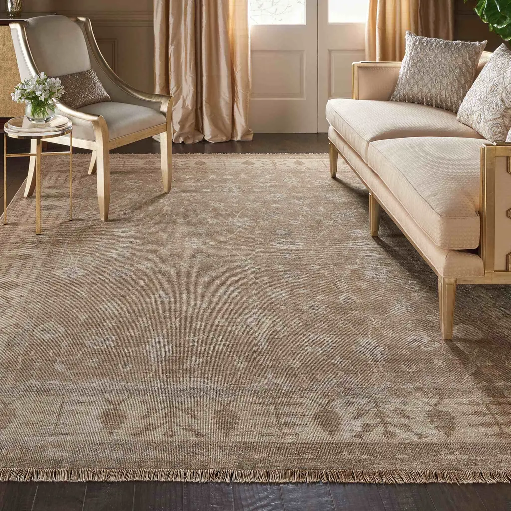 In a majestic color palette of ivory, chocolate brown and rose, a traditional bordered leaf and vine design truly shines. Woven from a lush bamboo extruded silk-like pile, this radiant rug, is remarkable to look at and wonderful to touch.Evoking the history and intricacies of traditional Persian designs, this antique-inspired collection is hand knotted from luxurious bamboo extruded silk-like fibers for an extravagant texture and tone that exudes a spectacular sumptuousness. Featuring an array of elegant color palettes in blended rich tones. Ships In 7-10 Business Days Ships In 7-10 Business Days Rug pad recommended Custom sizes available Hand-knotted pile with a lustrous vintage sheen Excellent durability even under heavy foot traffic Slight variations in color from product to product are natural characteristics of high quality handcrafted home decor. Your product may not exactly match what is pictured on this page.