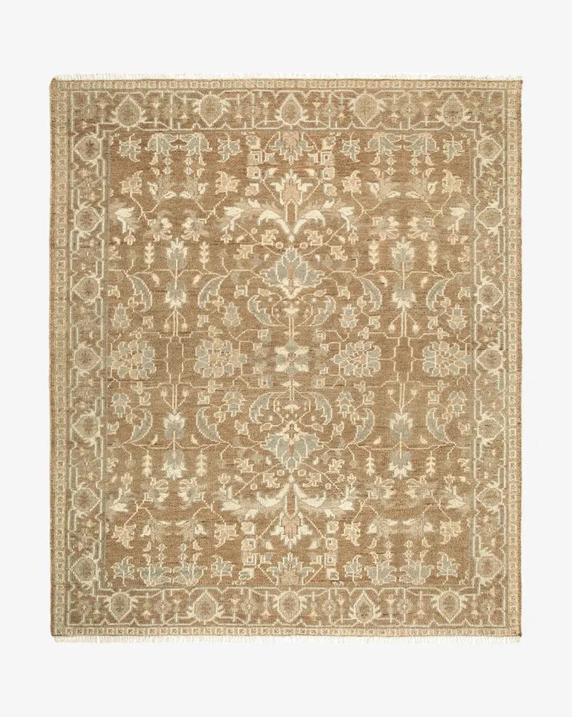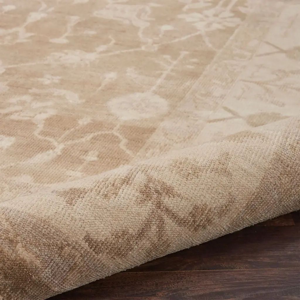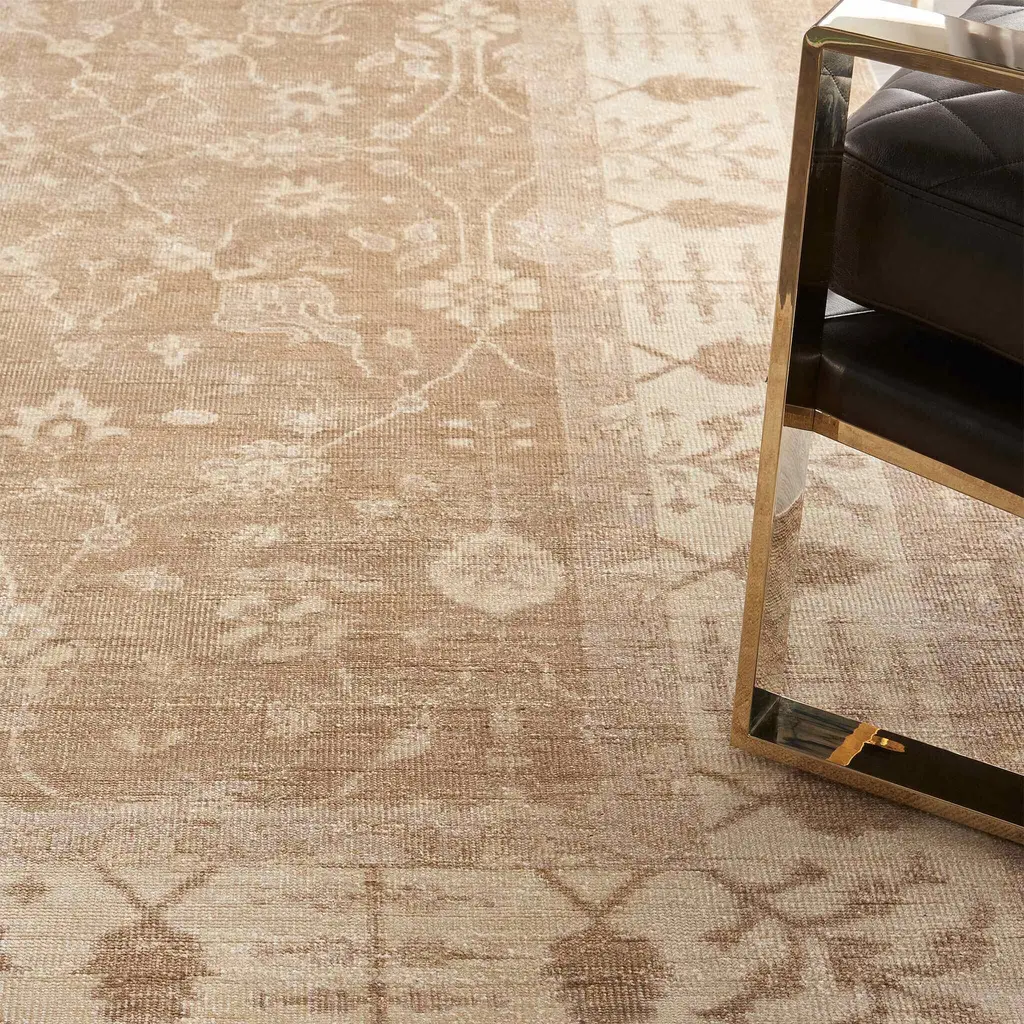 In a majestic color palette of ivory, chocolate brown and rose, a traditional bordered leaf and vine design truly shines. Woven from a lush bamboo extruded silk-like pile, this radiant rug, is remarkable to look at and wonderful to touch.Evoking the history and intricacies of traditional Persian designs, this antique-inspired collection is hand knotted from luxurious bamboo extruded silk-like fibers for an extravagant texture and tone that exudes a spectacular sumptuousness. Featuring an array of elegant color palettes in blended rich tones. Ships In 7-10 Business Days Ships In 7-10 Business Days Rug pad recommended Custom sizes available Hand-knotted pile with a lustrous vintage sheen Excellent durability even under heavy foot traffic Slight variations in color from product to product are natural characteristics of high quality handcrafted home decor. Your product may not exactly match what is pictured on this page.