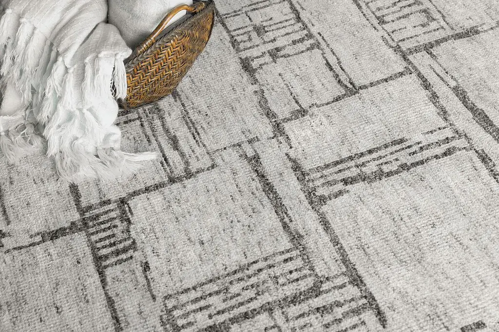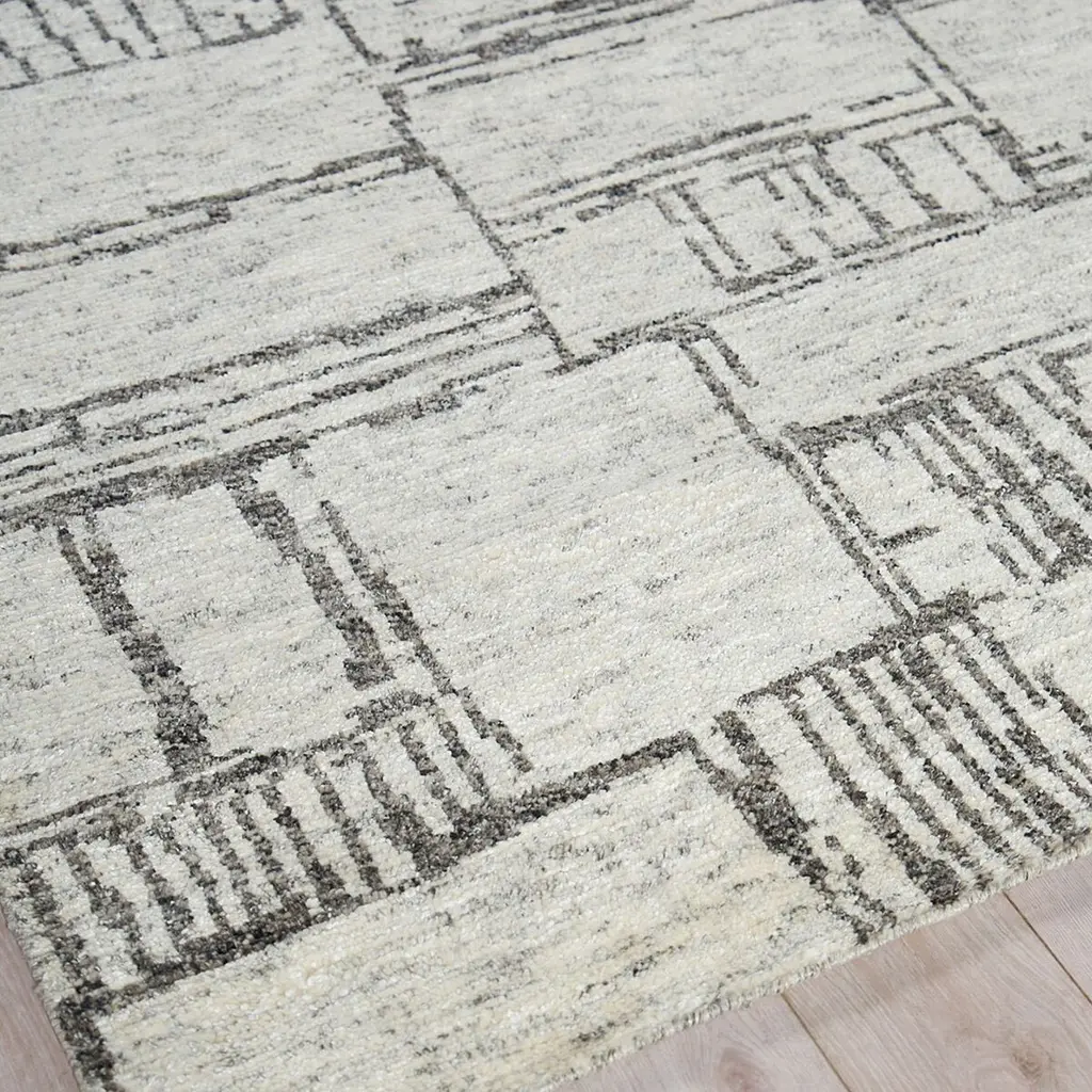 Anchor any room with the rich texture and pattern of the Aldridge rug. Hand-knotted with a luxurious blend of wool and bamboo silk, geometric lines create an eye-catching graphic pattern on this soft low pile rug.