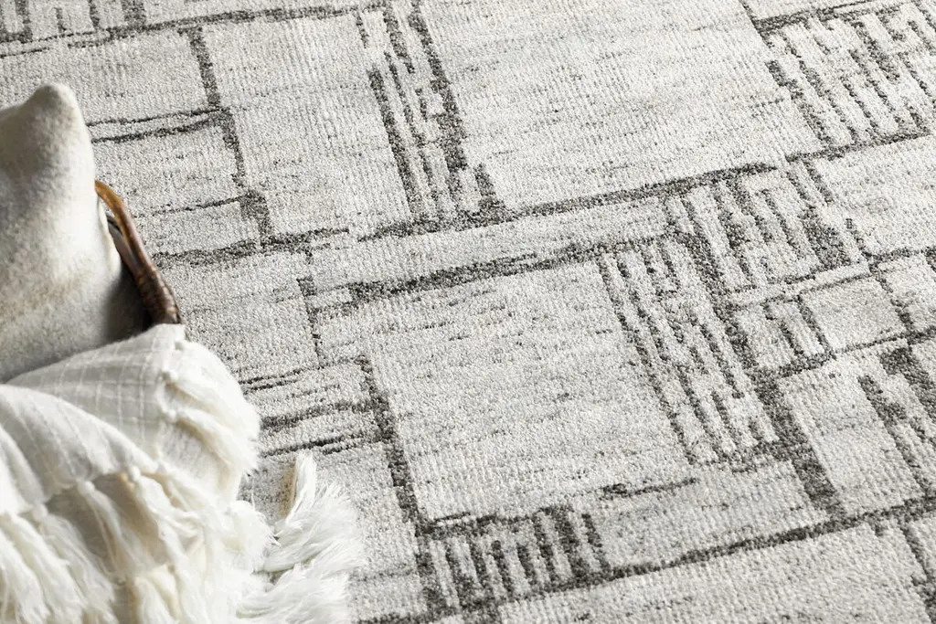 Anchor any room with the rich texture and pattern of the Aldridge rug. Hand-knotted with a luxurious blend of wool and bamboo silk, geometric lines create an eye-catching graphic pattern on this soft low pile rug.