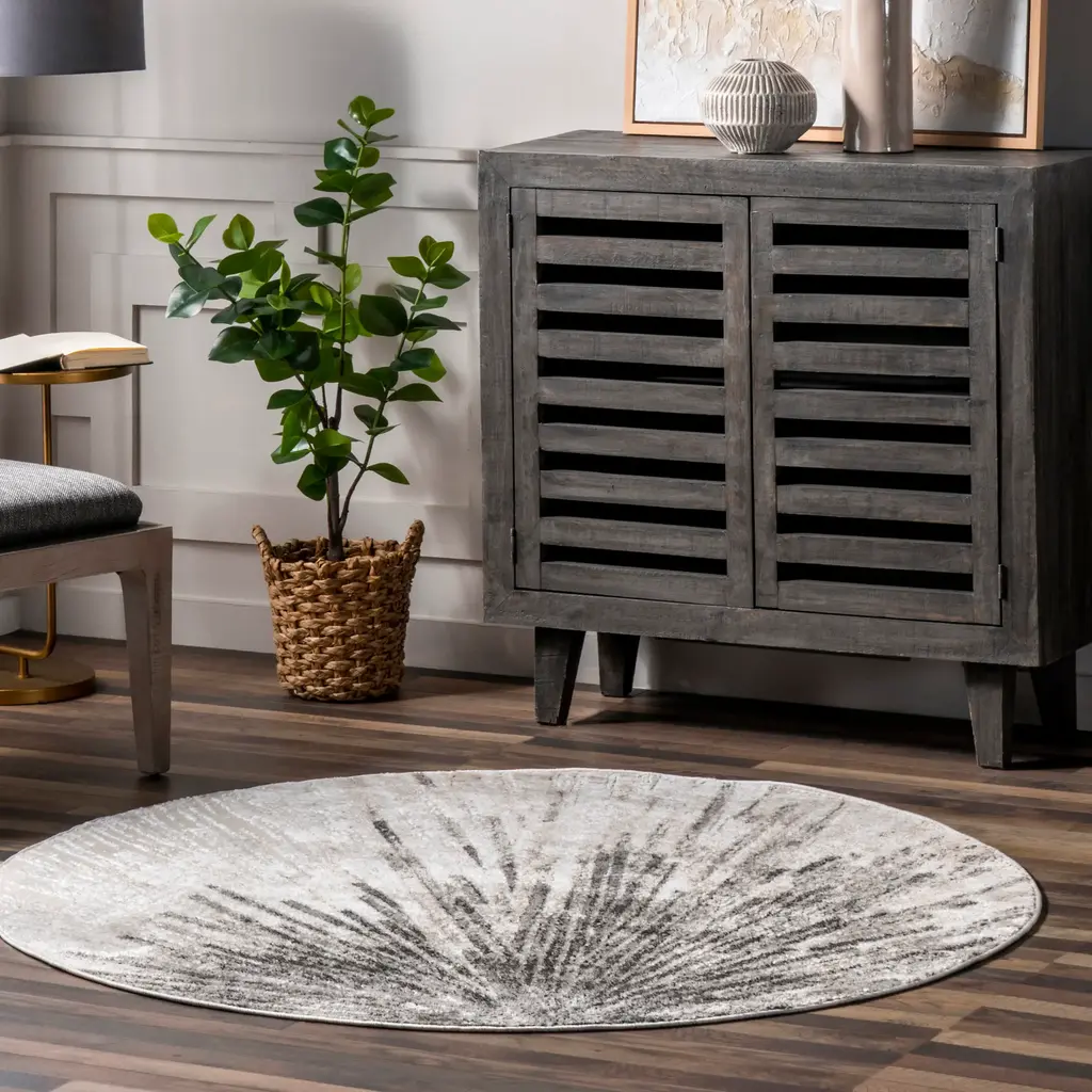 Fireworks galore! Let the sleek, divine look of this sophisticated floor covering sweep you off your feet. It features a stunning pattern in hues of golds and silvers, while a durable fabrication of synthetics promises to last for years to come. No matter what area you place it in, it's bound to be the statement piece to take your home from incomplete to breath-taking! Choose from a wide array of sizes from our pet-friendly and easy to clean area rugs.