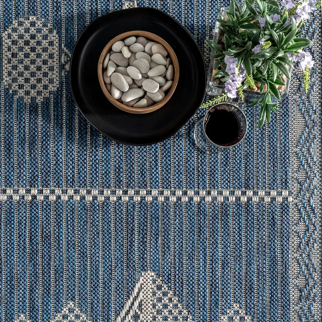 Whoever said nice floor coverings are only for inside the home hasn’t come across a stunning indoor/outdoor rug yet. This beautiful pattern is sure to make a statement and add the perfect finishing touch to any space inside or outside your home. Made from durable synthetic fibers, this rug will last for years to come while remaining gorgeous underfoot. Pair with any existing decor from modern to bohemian and let this floor covering be the centerpiece. Kick back and relax with our easy to care for and pet-friendly area rugs.
