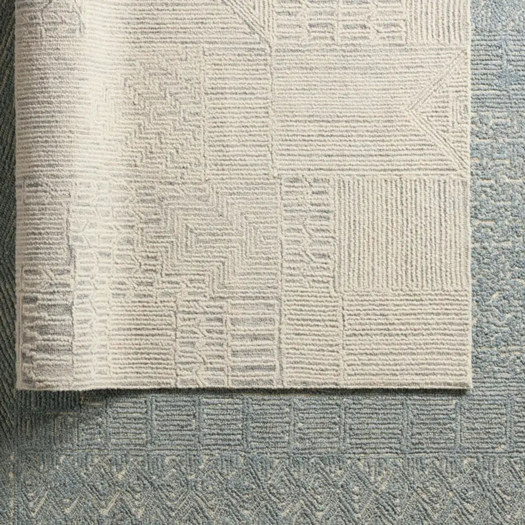 Alexei Geometric Handmade Tufted Area Rug In Cream/light Gray