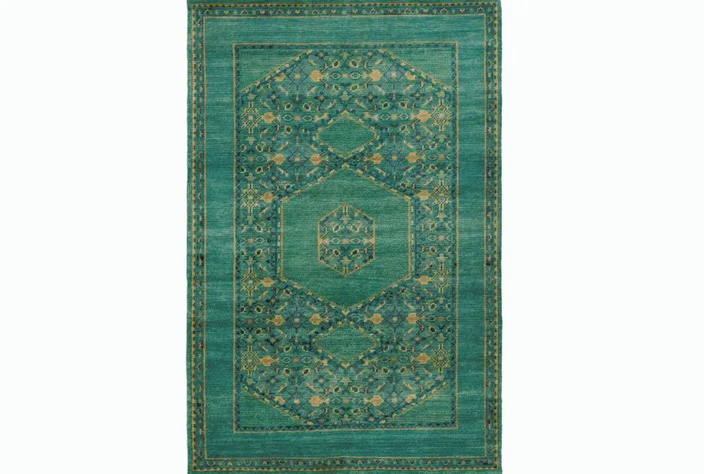 Deep, vivid hues give the traditional motifs of this hand-knotted rug a fresh, modern perspective. We recommend a rug pad to extend the life of the rug and keep it securely in place.