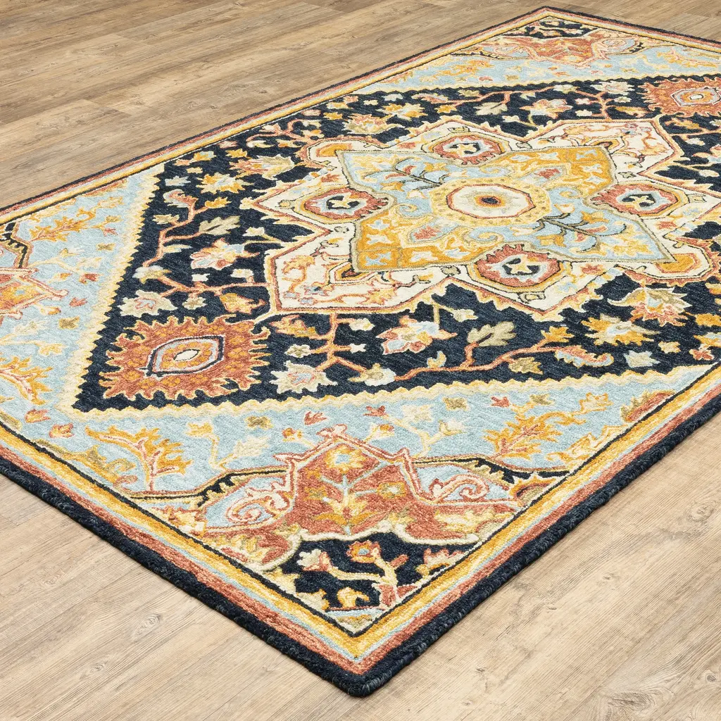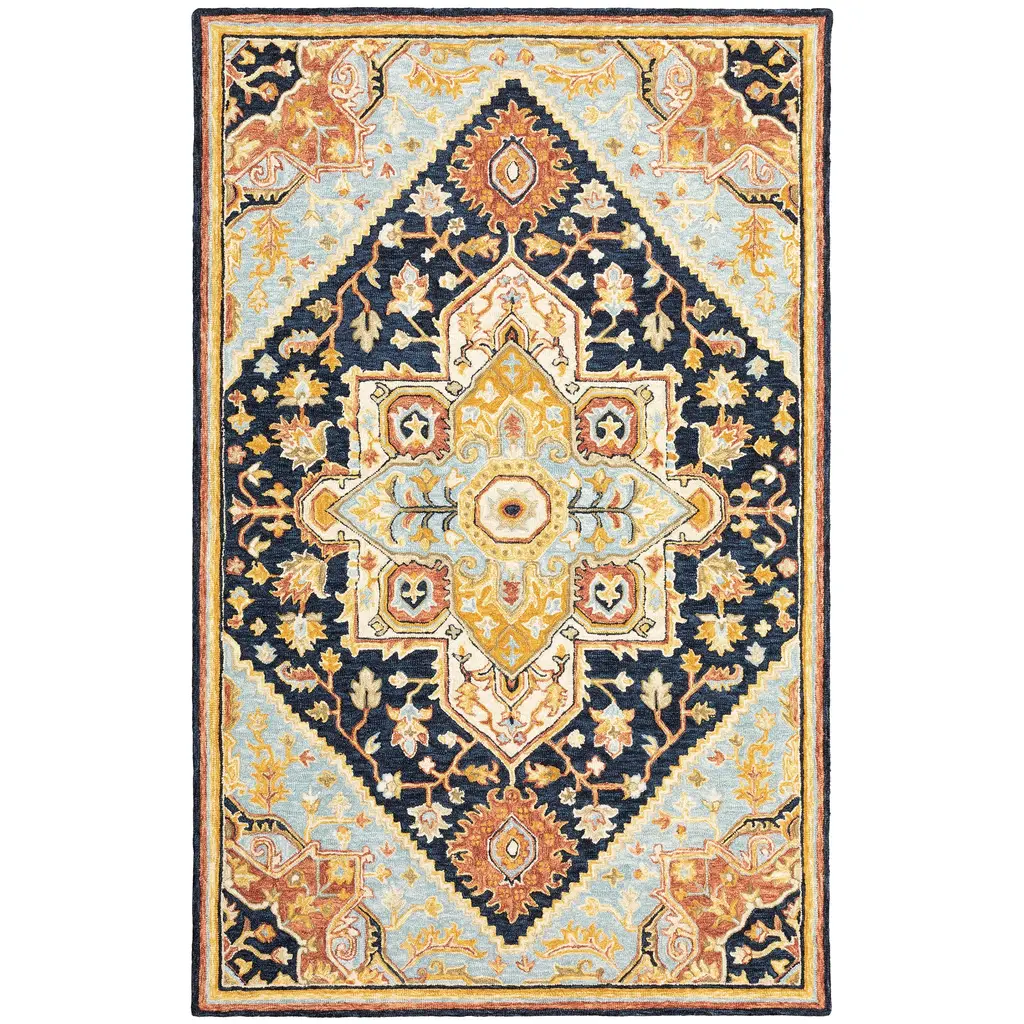 The Alfresco collection features warm, sun-washed shades of red, clay, and gold, as well as soft, muted shades of gray, blue and green. Hand-crafted of space-dyed wool in India, Alfresco offers traditional Bohemian designs with a luxurious looped pile for added texture to enhance any room setting.Collection: Alfresco ALFRE 28408Type: Indoor RugOrigin: IndiaMaterials: WoolBacking Material: ClothWeave: Hand-tuftedConstruction: Hand-madePile Type: Loop-pileColor Combo: Navy/RustColor List: Navy, Rust, Blue, Ivory, GoldStyle: Traditional Vintage BohemianPattern: Oriental MedallionStain Resistant: NoBacking: YesFringe: NoPile Height: 0.39Care: Regular vacuuming without the beater bar helps rug remain attractive and serviceable; clean spills immediately by blotting with clean sponge or cloth with mild detergent; periodic professional cleaning is recommended Avoid direct sunlight to prevent fading, initial shedding is normal and will decline over time