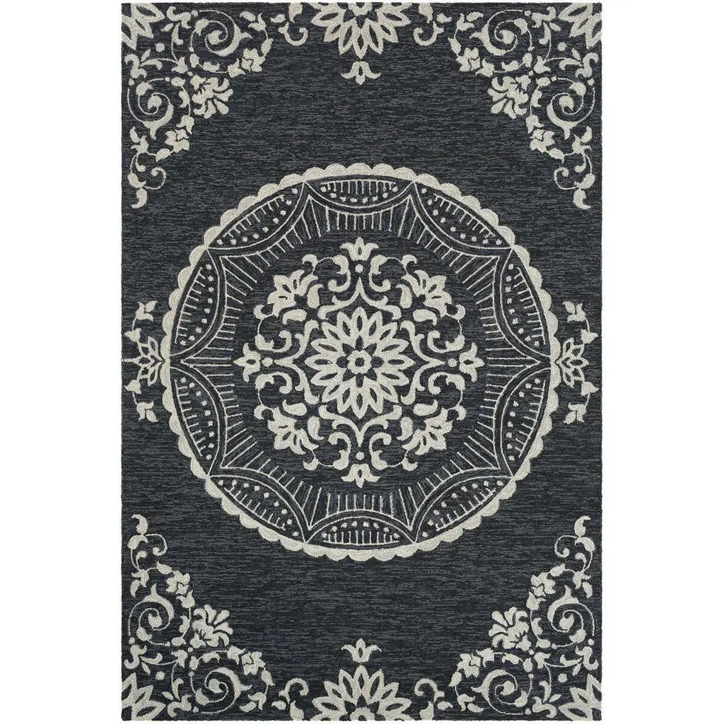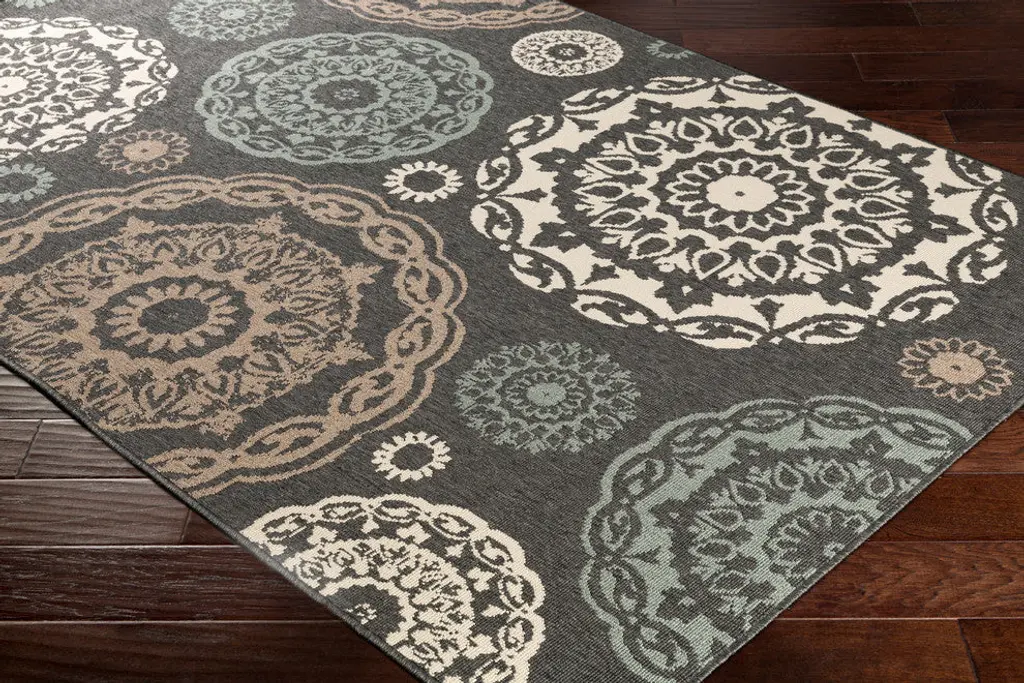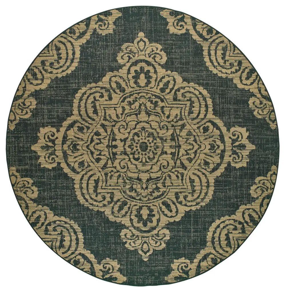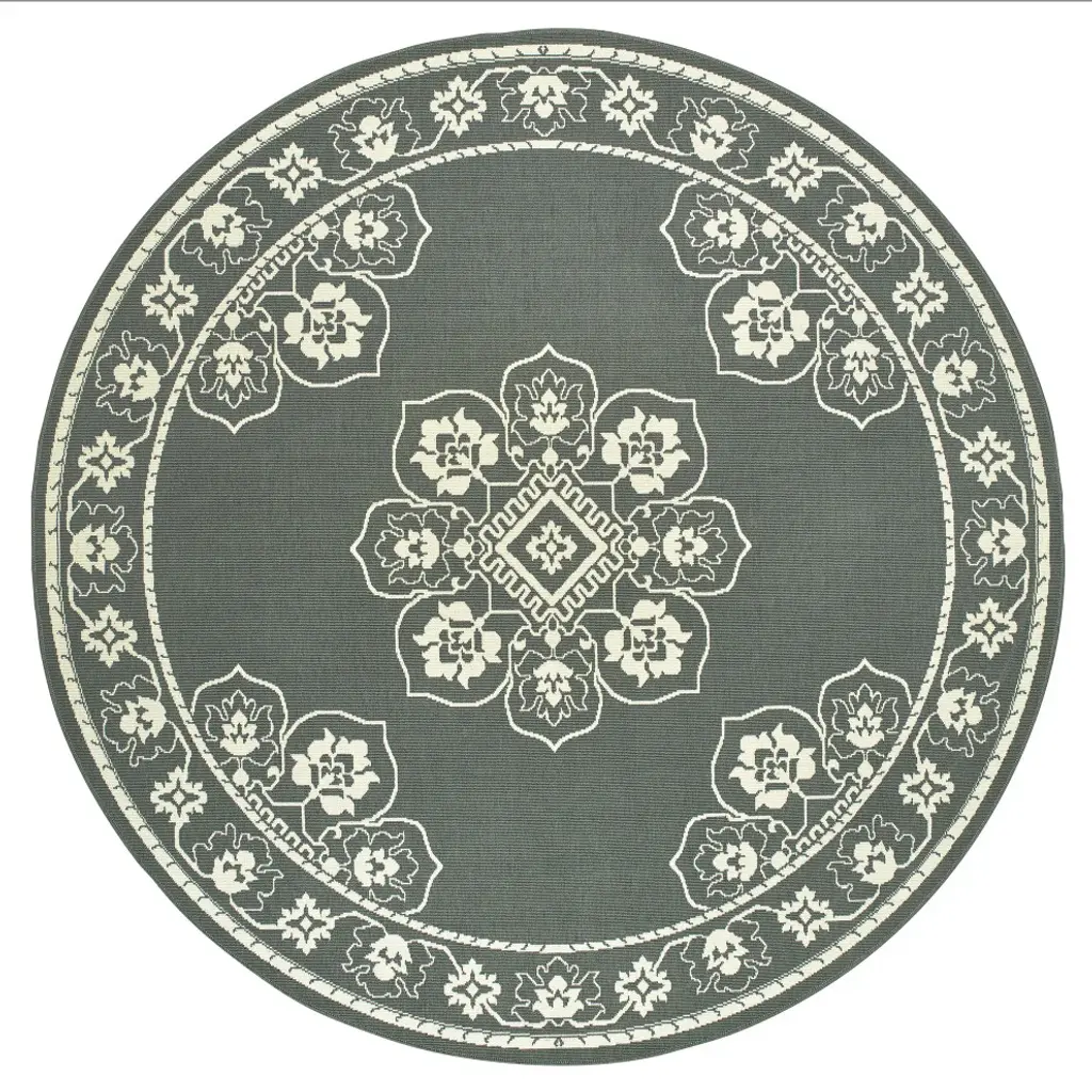 Alfresco Medallion Black, Sea Foam Area Rug, 8'9" Round