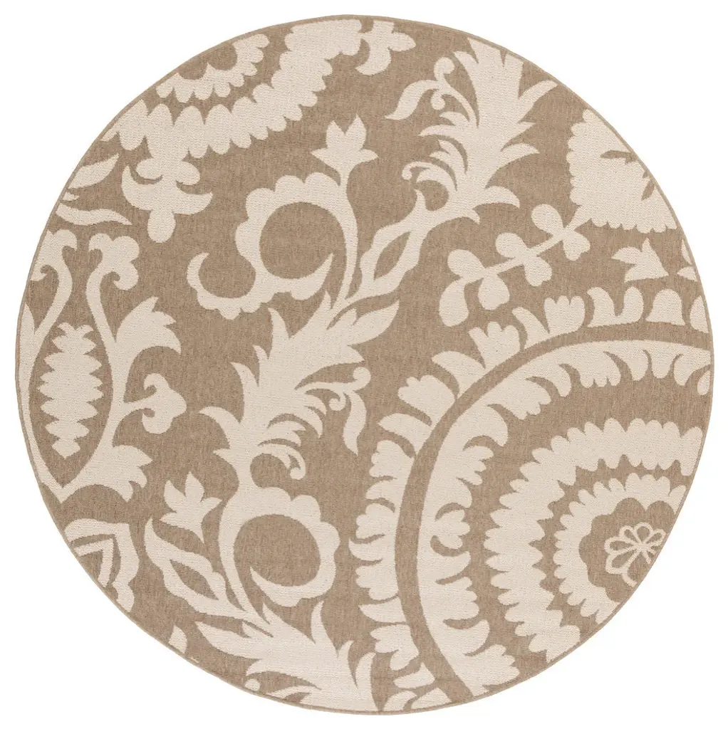 Experts at merging form with function, we translate the most relevant apparel and home decor trends into fashion-forward products across a range of styles, price points and categories _ including rugs, pillows, throws, wall decor, lighting, accent furniture, decorative accessories and bedding. From classic to contemporary, our selection of inspired products provides fresh, colorful and on-trend options for every lifestyle and budget.Achieving a sense of timeless trend that will suit both your indoor AND outdoor spaces, the Alfresco collection by Surya is everything you''ve been searching for and so much more! Embodying a series of current trends, these 100% polypropylene pieces will radiate a sense of upbeat and exquisite charm that will surely transform any room within your indoor or outdoor decor.Number of Items Included: 1Pieces Included: RugTop Seller: YCommercial Use: YProduct Type: Area RugConstruction: Machine MadeKnot Type: Not ApplicableDetails: Loop Texture, Easy Care, No SheddingGeneric Materials: PolypropyleneBacking: PolypropyleneNRF Color Code: 101Navigational Color: NeutralFamily Color: WhiteColors: Camel, CreamPantone #: 17-0808, 12-0000Shape: RoundTheme: OutdoorGender: UnisexLifestage: AdultReversible: NDistressed: NBorder Color: N/AFringe: NOutdoor Safe?: YRug Pad Needed?: Yes, RecommendedProduct Care: However, to ensure for a more lasting quality, steps must be taken during care and cleaning to protect the durability of your polished piece. High powered vacuums, more often than not, pull out of the back of rugs, causing sprouts and a generally unattractive appearance to a once flawless rug. To counter this effect, place your vacuum starting at the edge of the rug, using a low setting and high elevation, or if possible, use hand held attachments when cleaning. As well, over time, the fibers within your piece will unavoidably begin to weaken. When this occurs, regularly, yarn will poke out from the edges of your rugs, and in order to prevent pulling, it is crucial that you do not simply pull the yarn out, but rather, cut these weak fibers using scissors to maintain the impeccable quality of your Surya rug. As well, if spills occur, it is crucial that you immediately tend to the area, blotting it with a towel to remove the moisture and to prevent any stain from setting. Product Warranty: 1 yearNRF Size Code: 76203Pile: Low PilePile Height - In: 0.157Swatch Available: YEco-Friendly: NWater Resistant: YWater Resistant Details: Made from water resistent materialWeather Resistant: YWeather Resistant Details: Made from weather resistent materialMildew Resistant: NStain Resistant: NFade Resistant: NRecycled Content: NRemanufactured/Refurbished: NCRI Certified: NGoodweave Certified: NProduct Category:Rugs