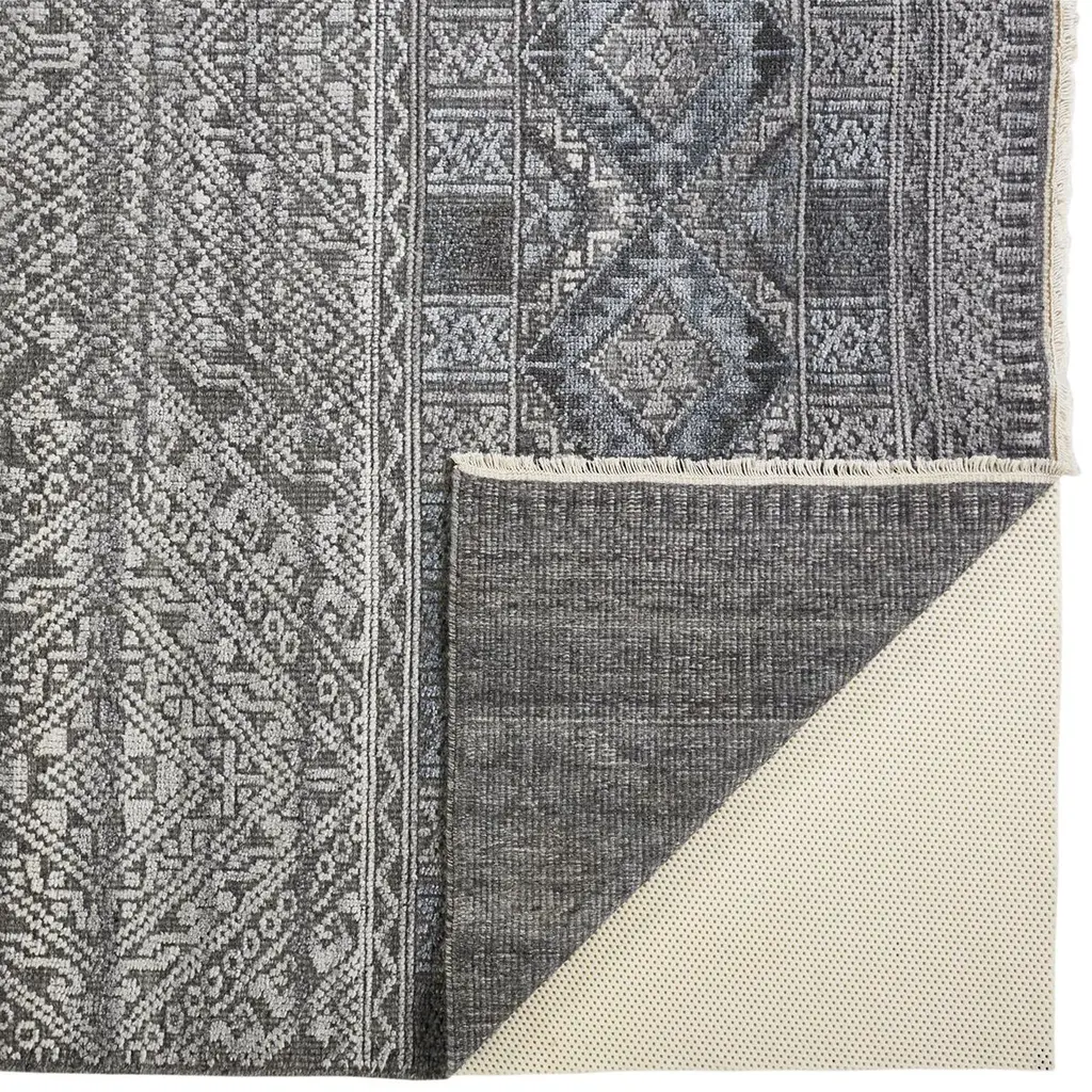 Silky viscose adds silken sheen to the durable wool of this hand-knotted rug. Subtle color variations among the global motifs contribute a sense of depth and artisanal allure. A rug pad is recommended to help prevent slipping.