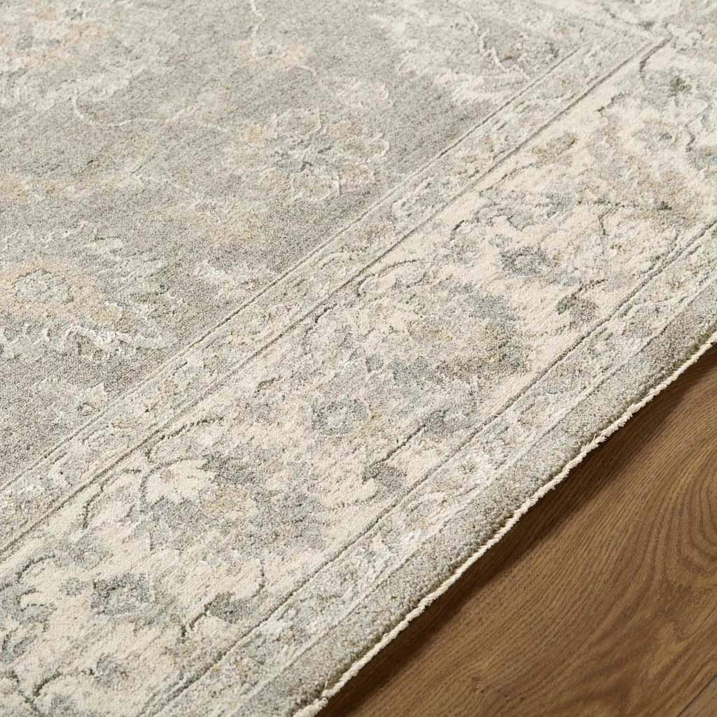 Collection: Alinae Colors: Light Sage, Slate Blue, Cream, Light Slate, Green, Tan Construction: Machine Woven Material: 100% Polyester Pile: Medium Pile Pile Height: 0.35" Styles: Traditional Made In: Turkey Thickness: 0.43" Price Range: $$$$$ (Affordable)